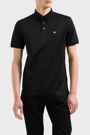 Pamuk Karışımlı Logolu Düğmeli Erkek Polo Yaka T Shirt EM001704 AF10017 MC184 SİYAH