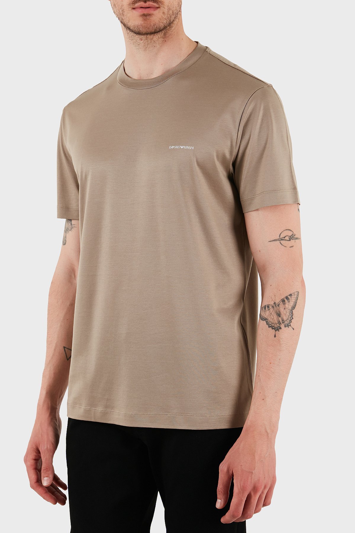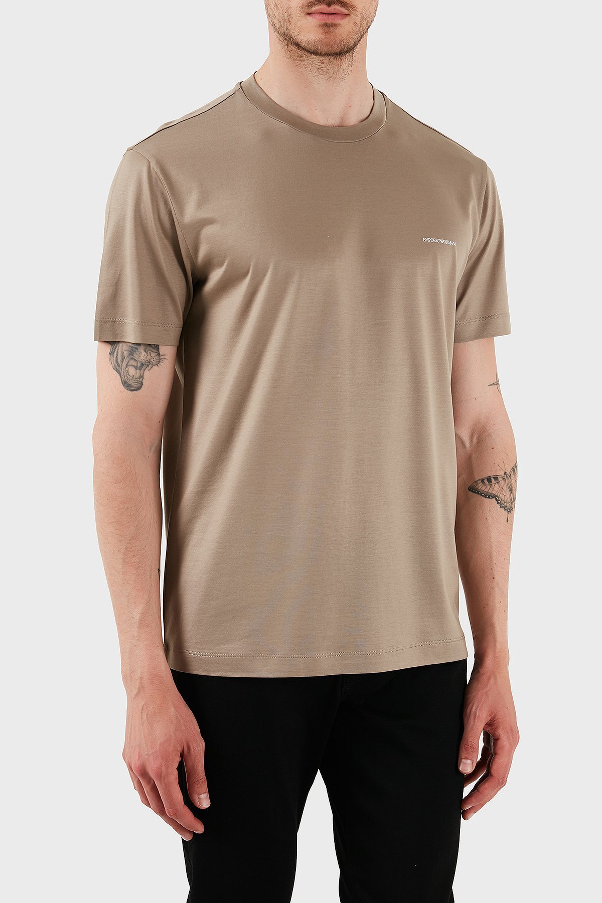Pamuk Karışımlı Regular Fit Bisiklet Yaka Logolu Erkek T Shirt 8N1TD8 1JUVZ U6167 BEJ