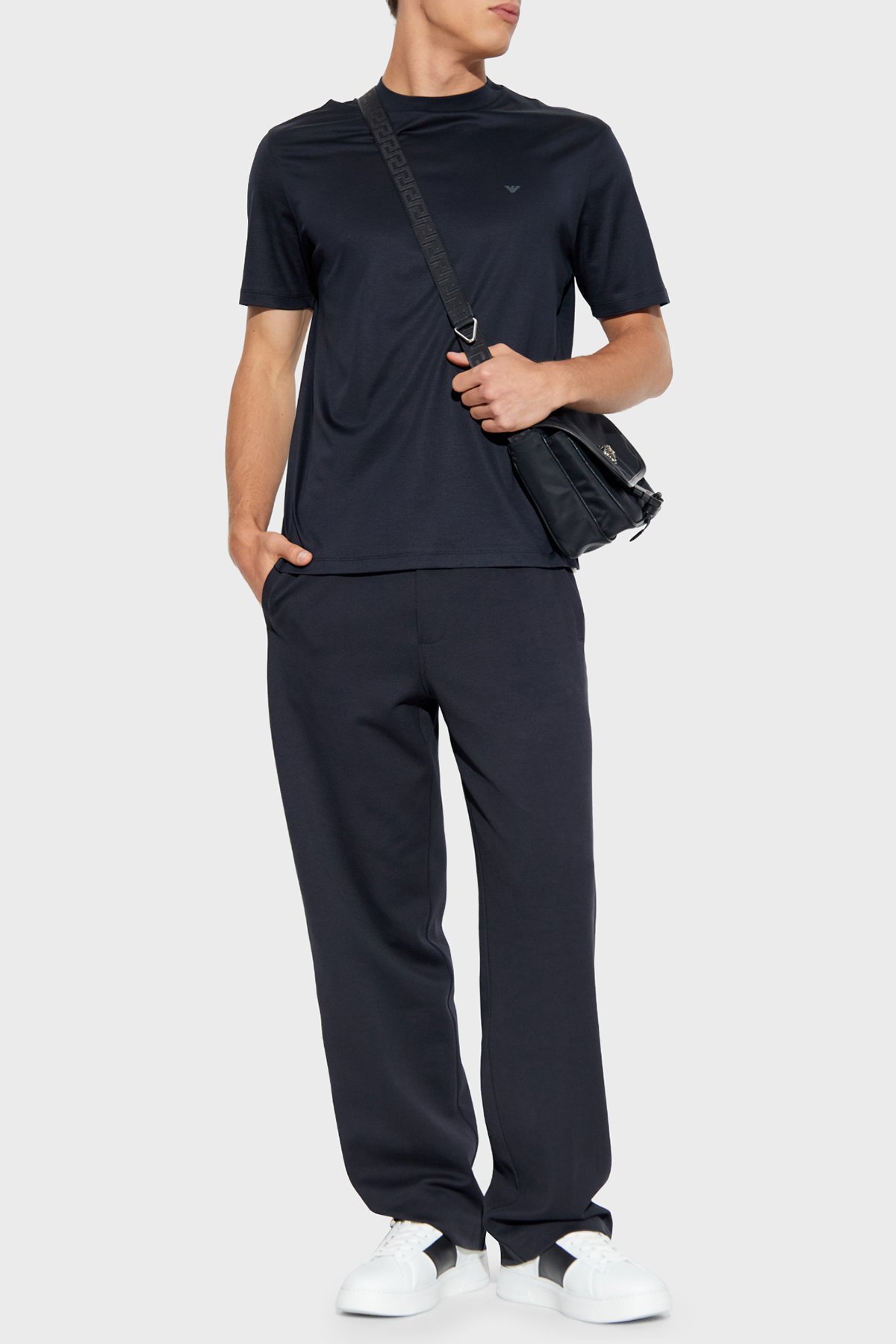 Pamuk Karışımlı Regular Fit Bisiklet Yaka Logolu Erkek T Shirt EM003137 AF10761 UB118 LACİVERT