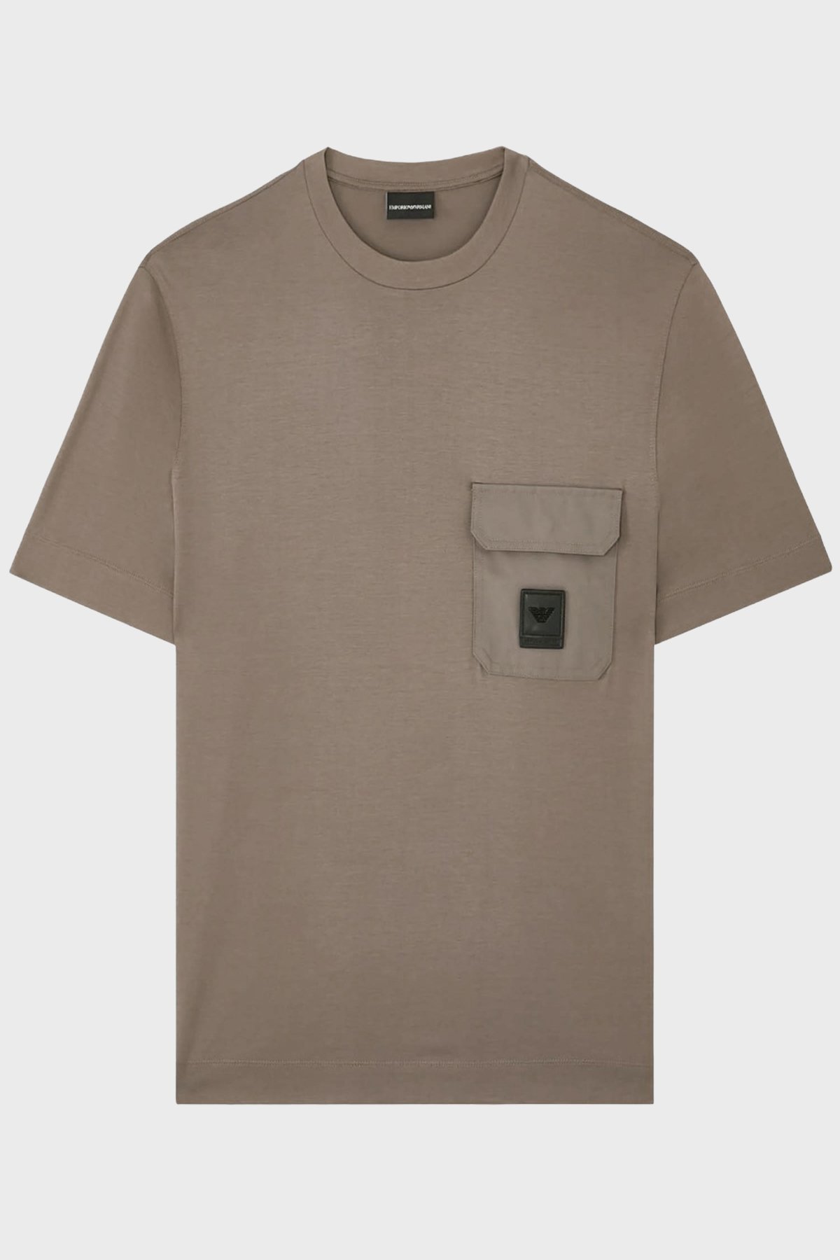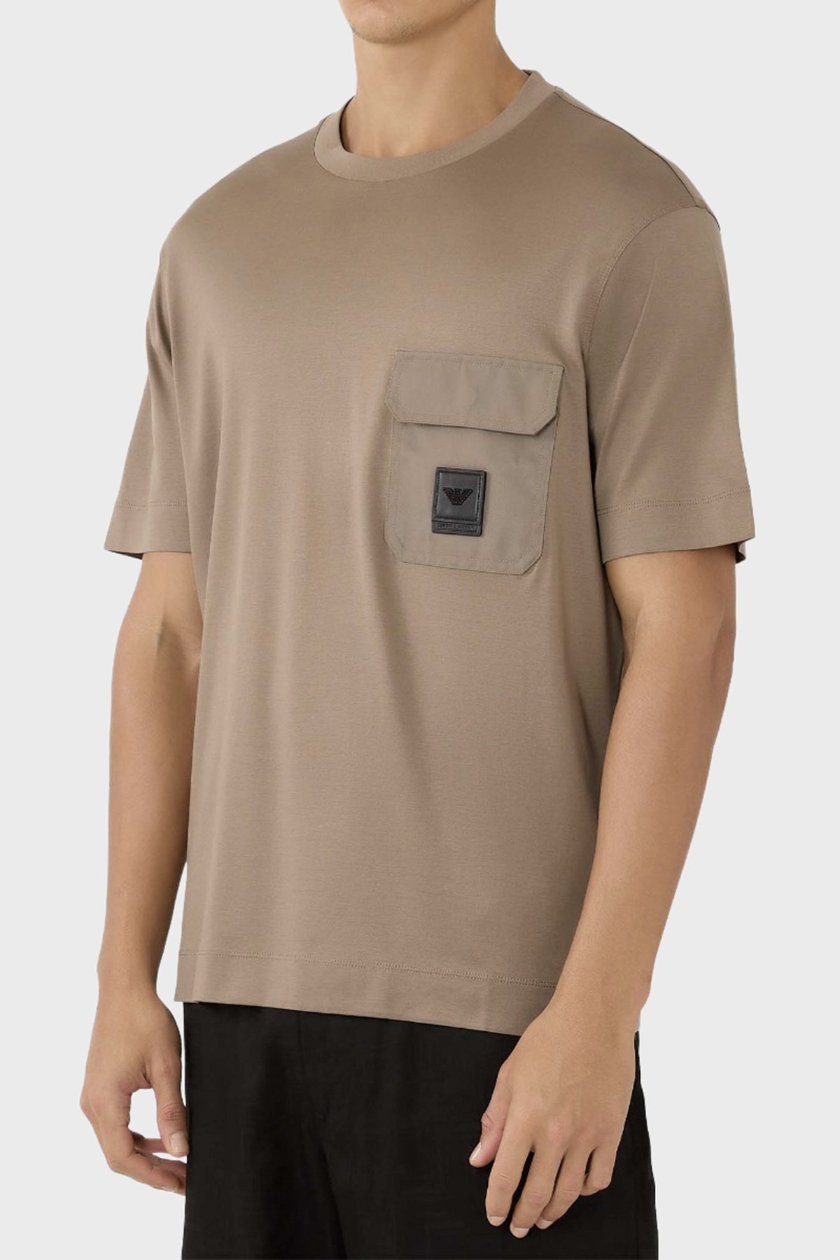 Pamuk Karışımlı Regular Fit Logolu Cep Detaylı Erkek T Shirt EM002978 AF10761 U6189 KAHVE