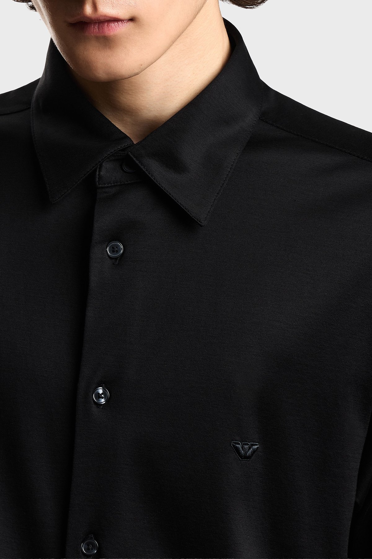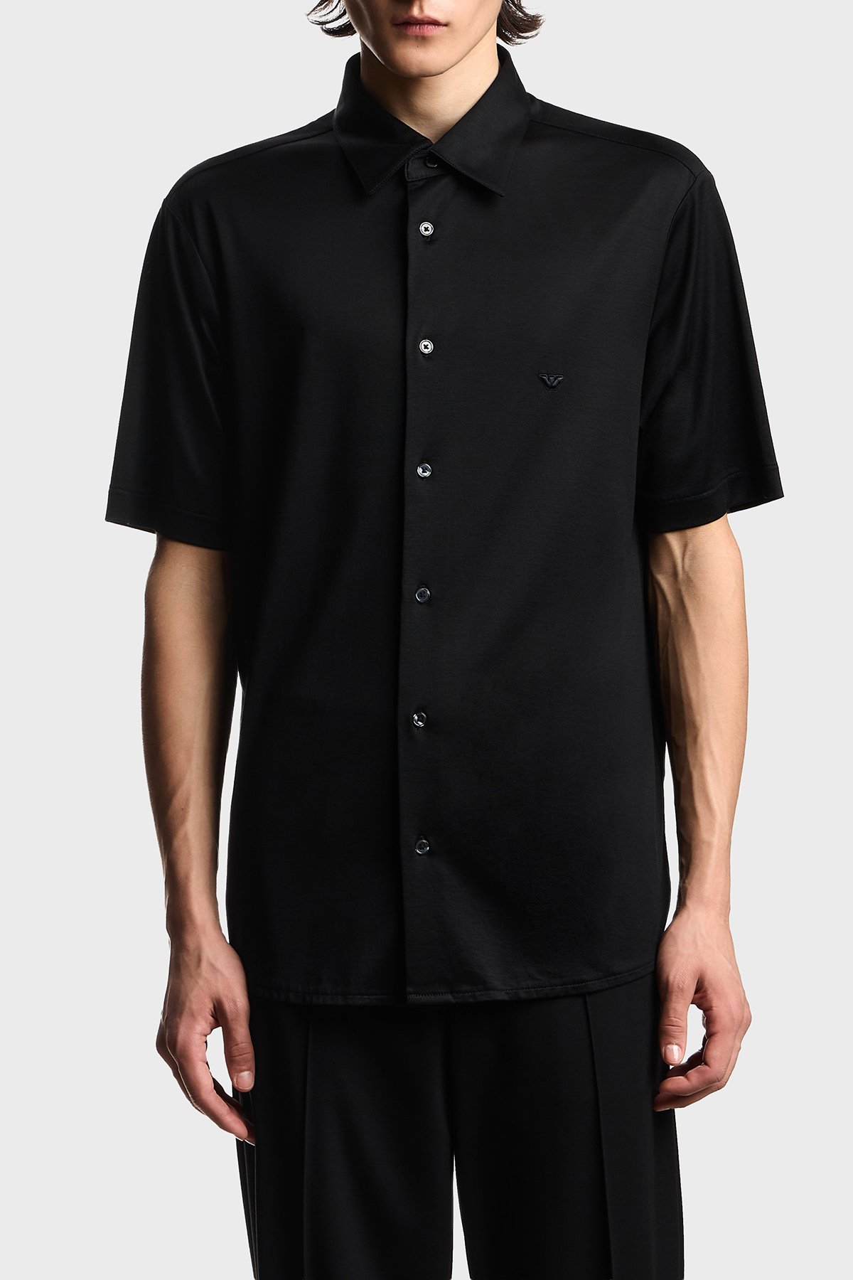Pamuk Karışımlı Slim Fit Logolu Kısa Kollu Erkek Gömlek EM004603 AF10017 UC001 SİYAH