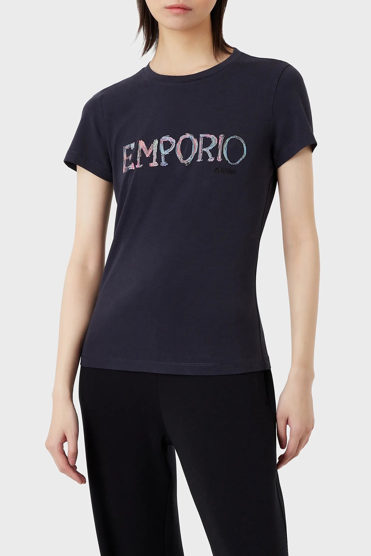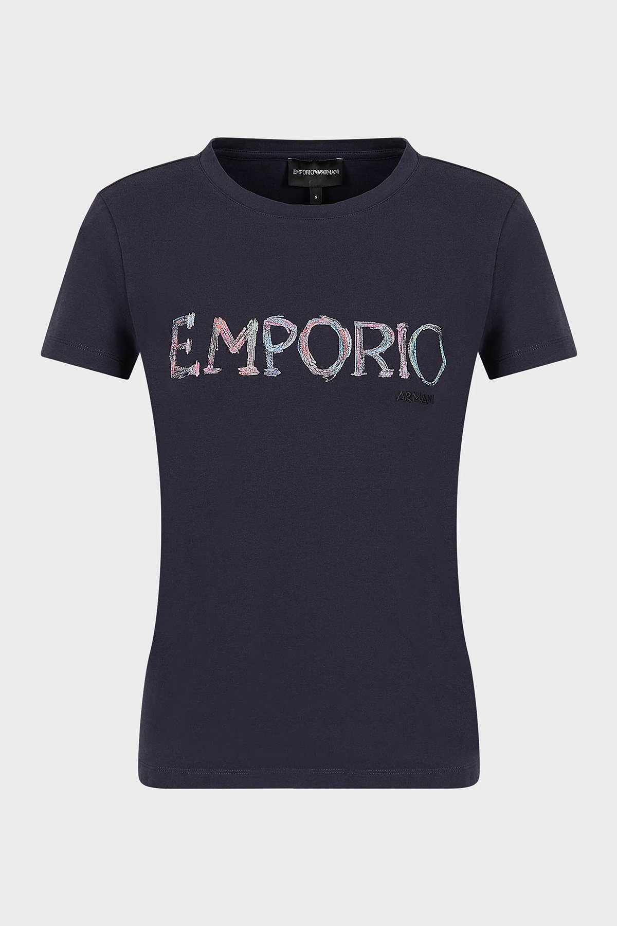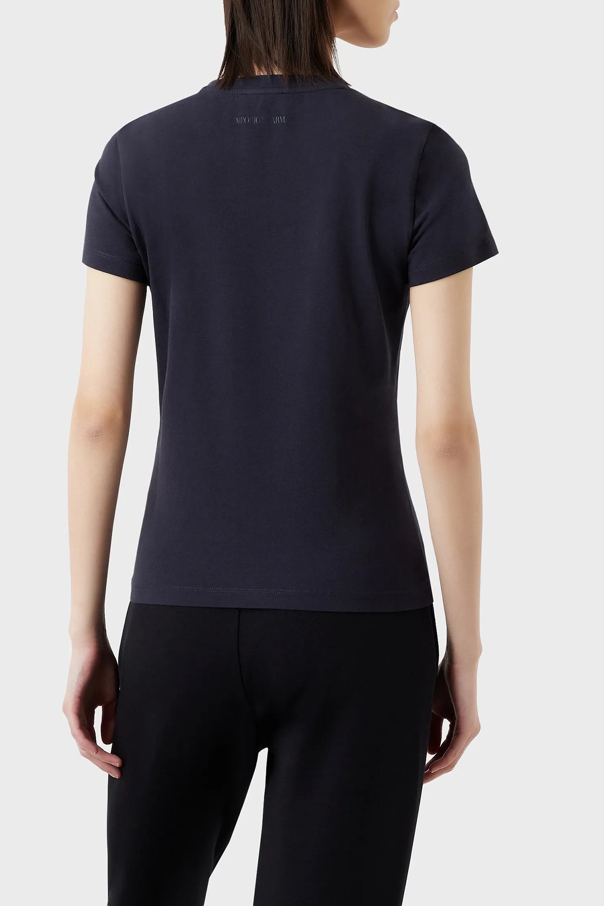 Pamuklu Baskılı Slim Fit Bisiklet Yaka Bayan T Shirt 3R2T7B 2J07Z 0828 LACİVERT