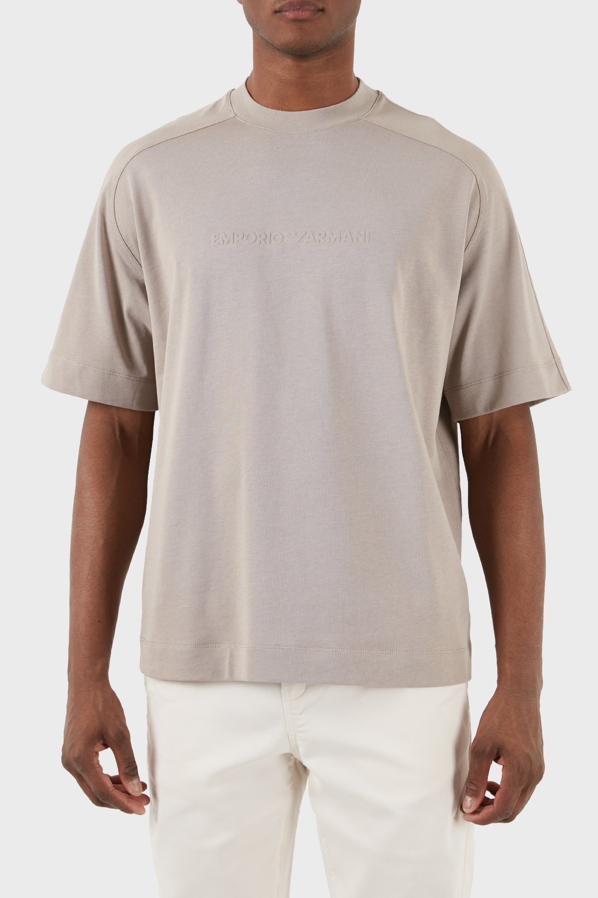 Pamuklu Bisiklet Yaka Oversize Erkek T Shirt 3D1T76 1JWZZ 0650 BEJ