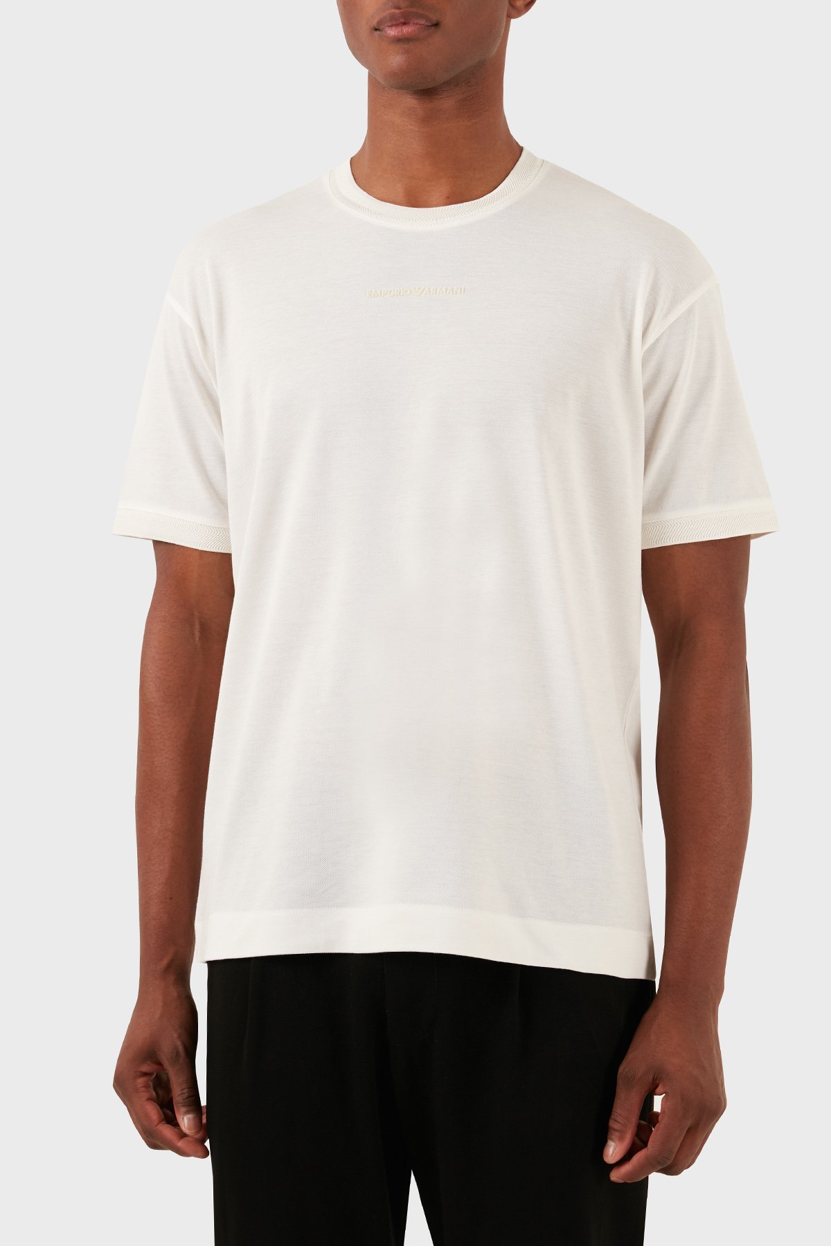 Pamuklu Bisiklet Yaka Regular Fit Erkek T Shirt 3D1TC8 1JTKZ 0101 BEYAZ