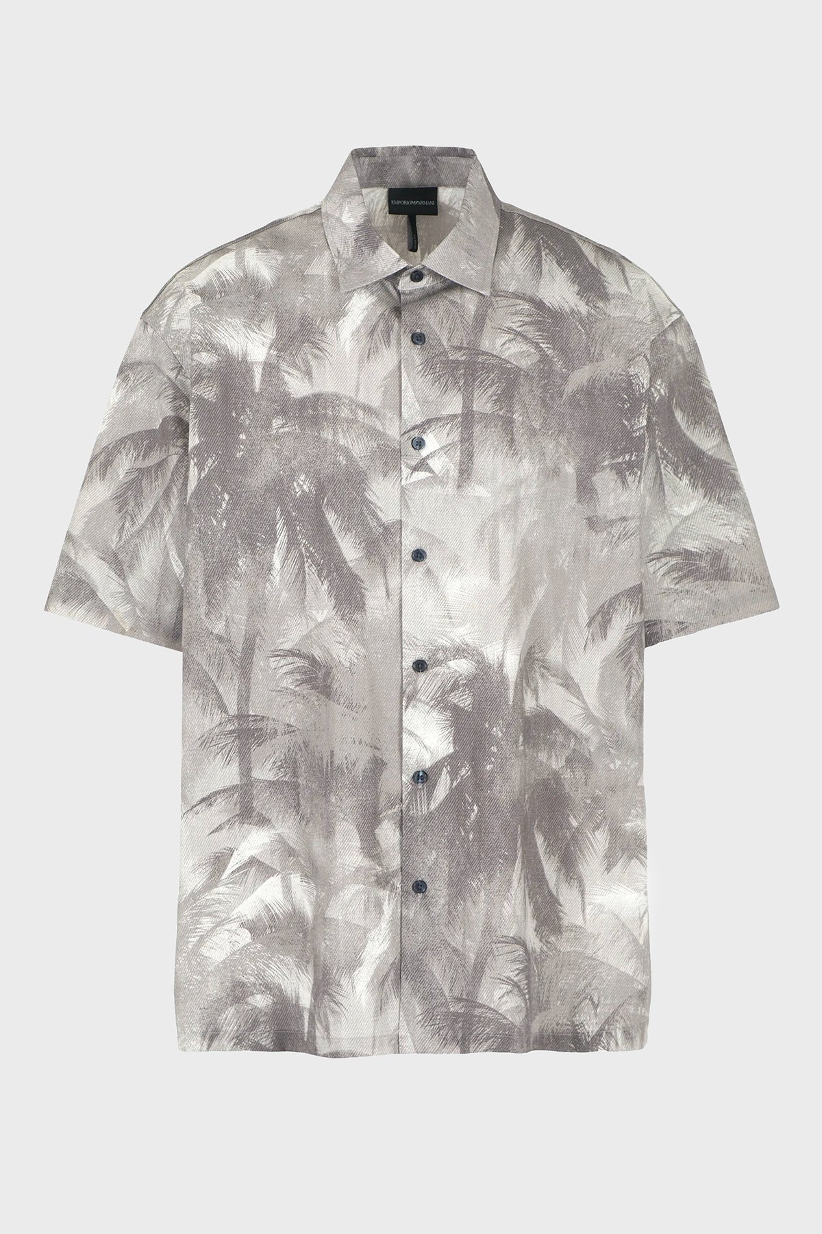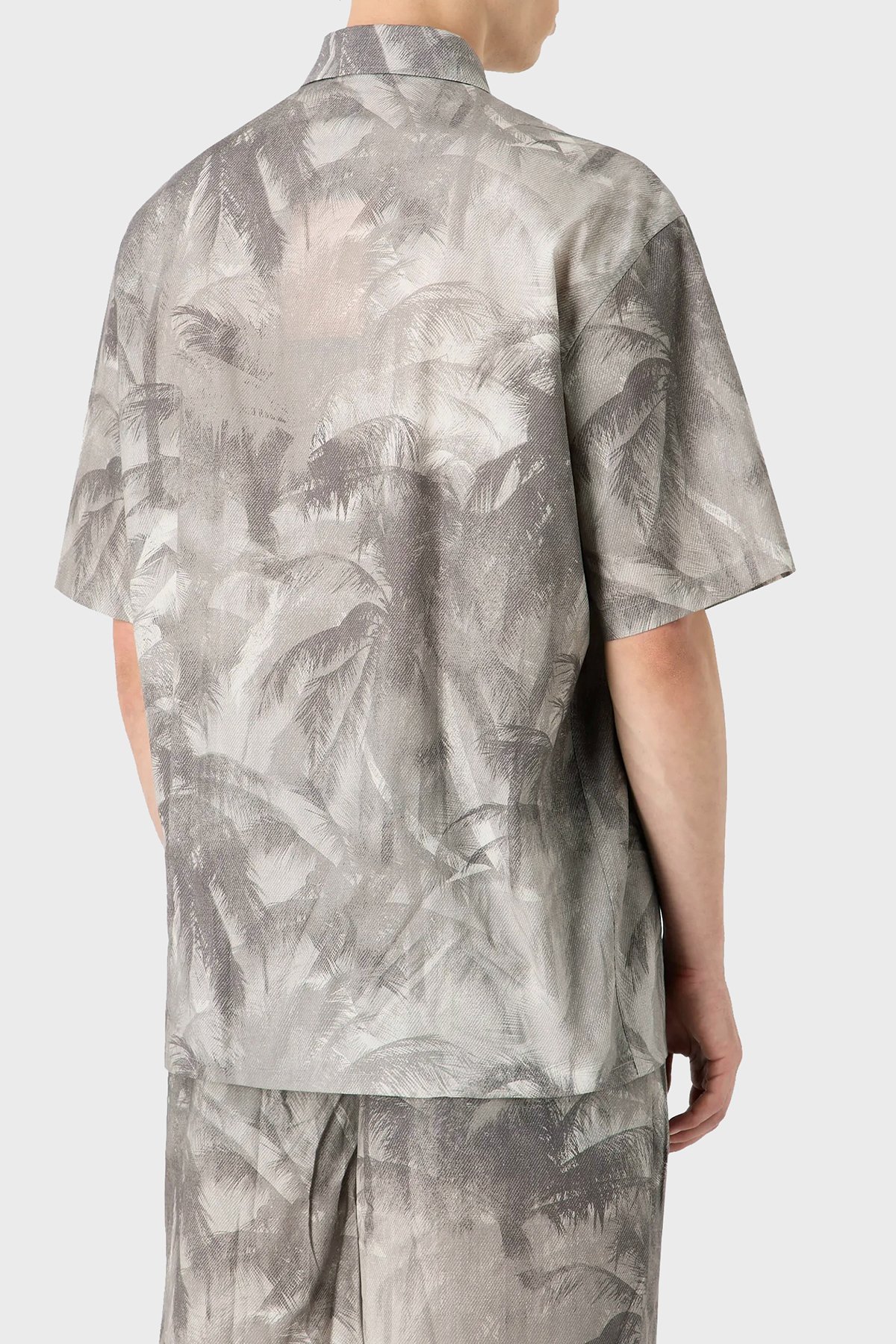 Pamuklu İpeksi Oversize Kısa Kollu Erkek Gömlek 3D1CG7 1NRDZ F617 GRİ