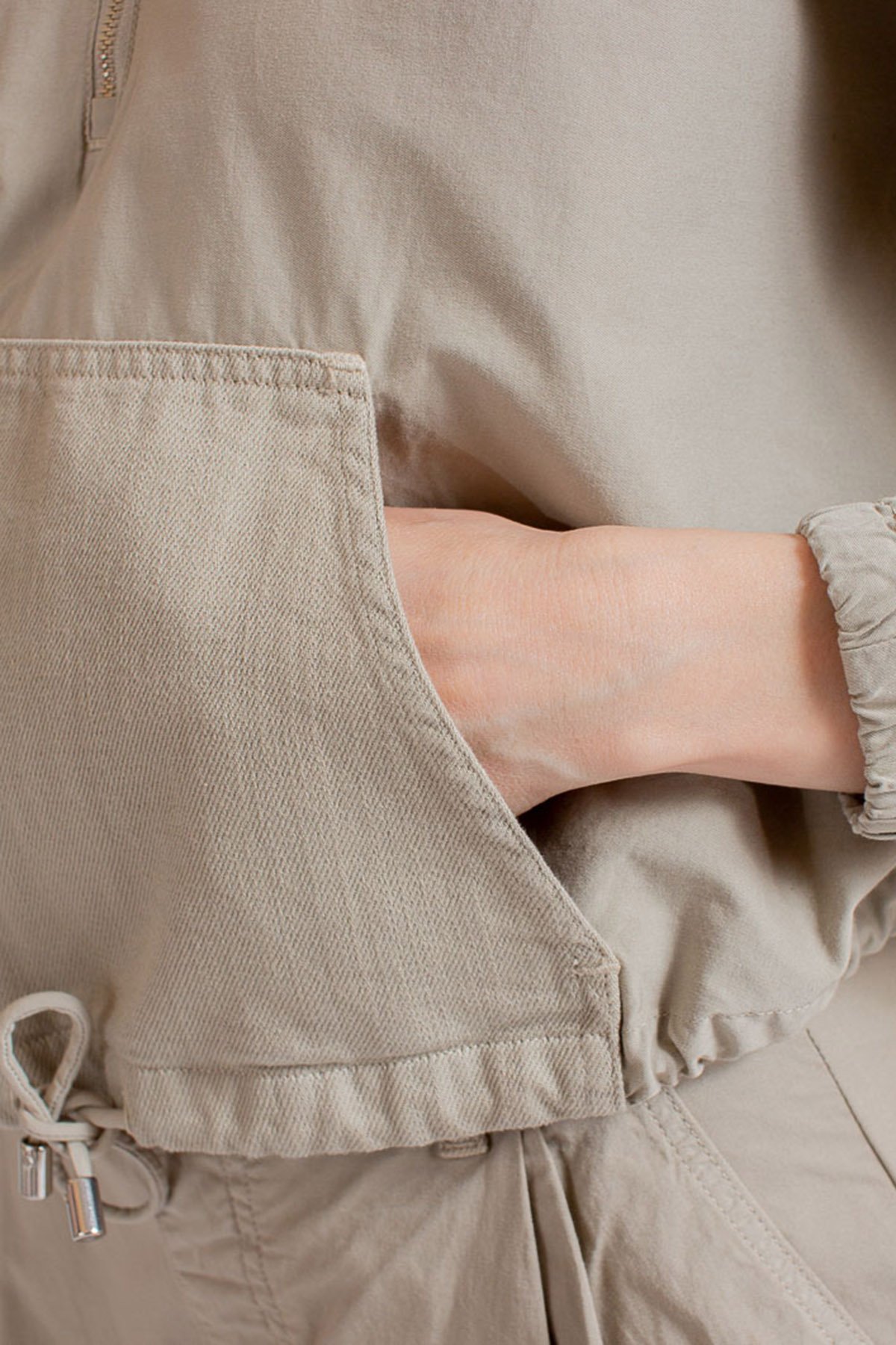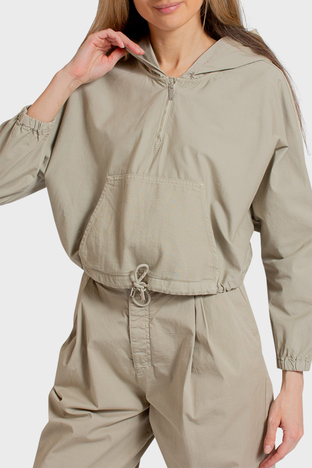 Pamuklu Kapüşonlu Kanguru Cepli Mevsimlik İnce Bayan Ceket 3R2K62 2NP9Z 0106 BEJ