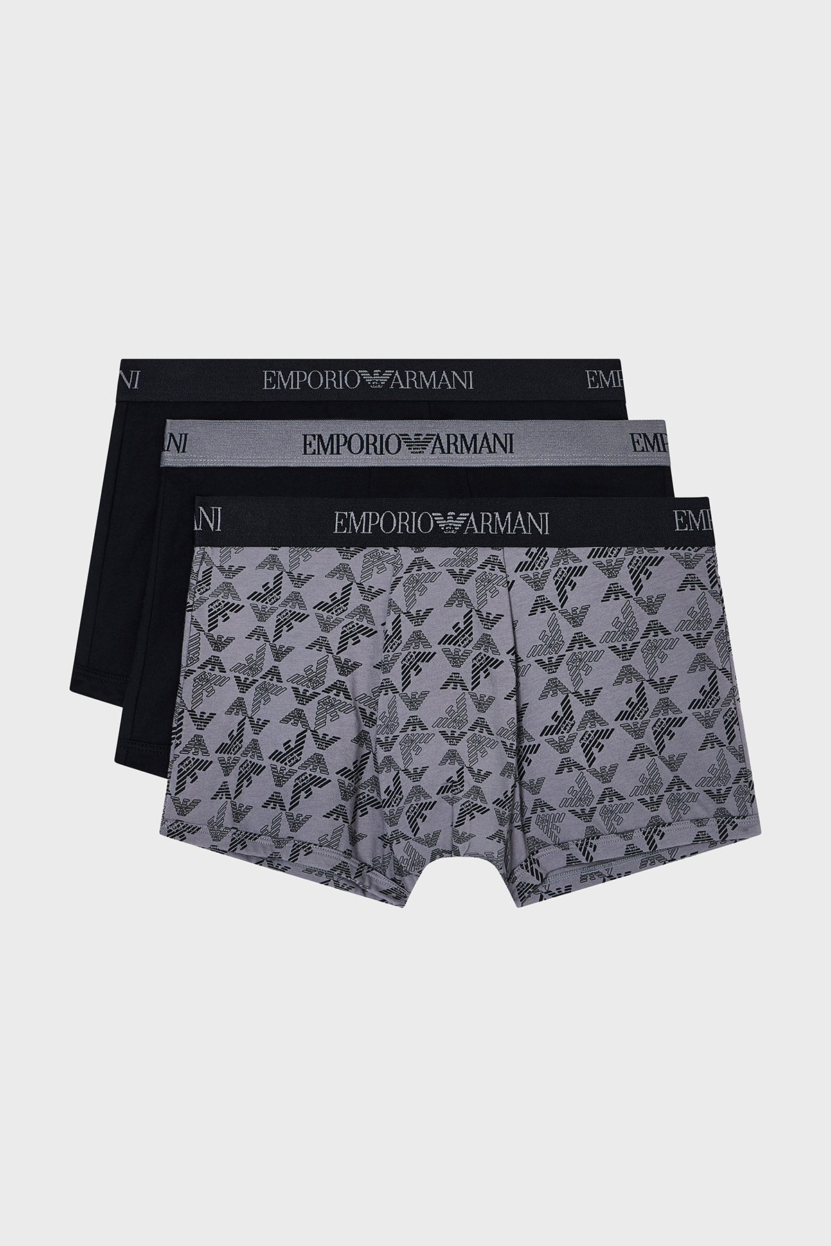 Pamuklu Logolu 3 Pack Erkek Boxer EM000260 AF10800 MC200 Siyah-Gri-Siyah