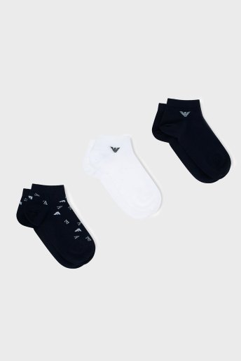 Pamuklu Logolu 3 Pack Erkek Çorap EM000550 AF20653 MB434 Lacivert-Beyaz-Lacivert