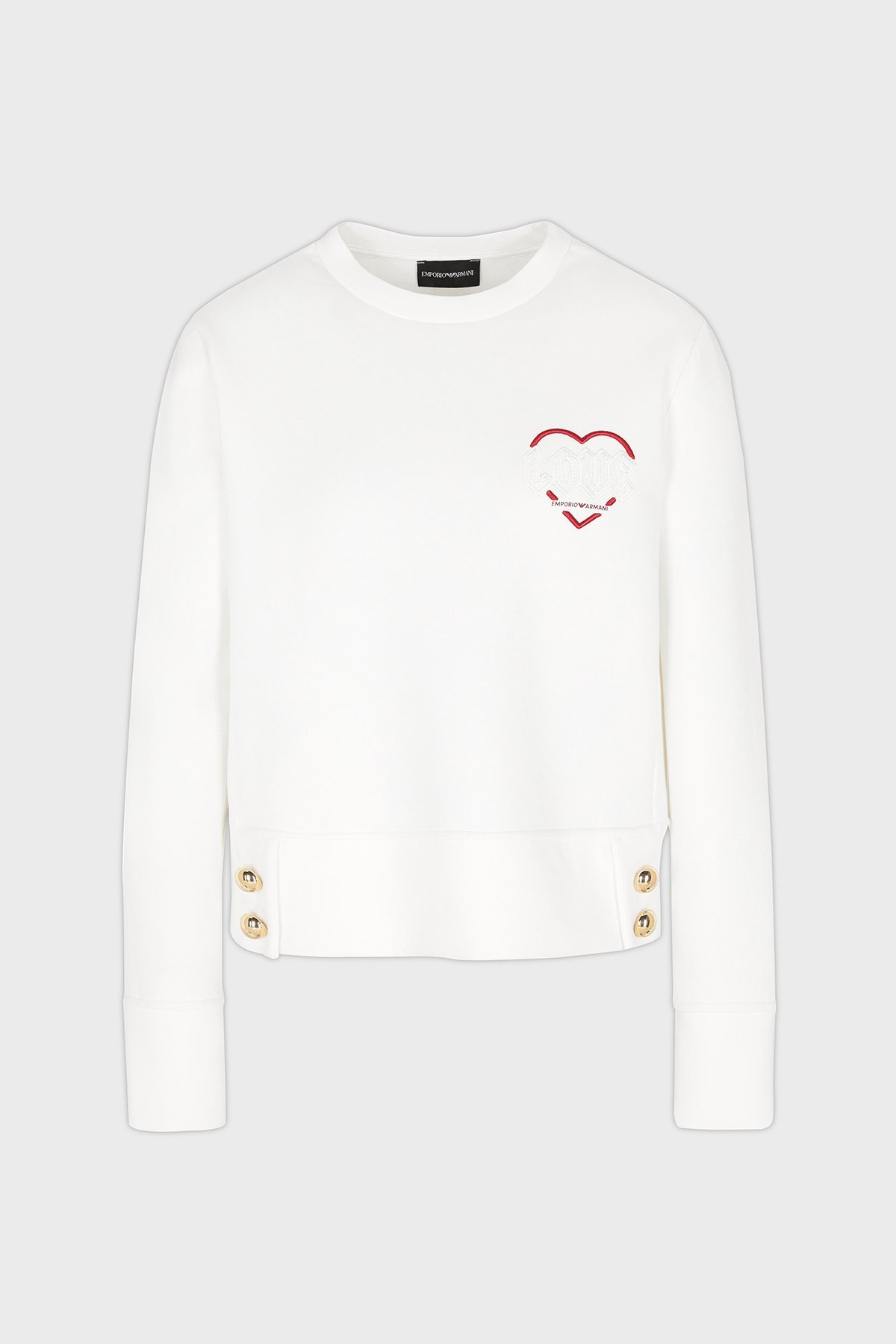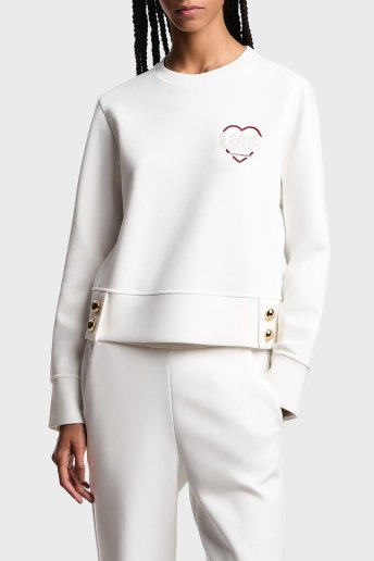 Pamuklu Regular Fit Bisiklet Yaka Düğme Detaylı Bayan Sweat EW001361 AF10002 U0006 BEYAZ