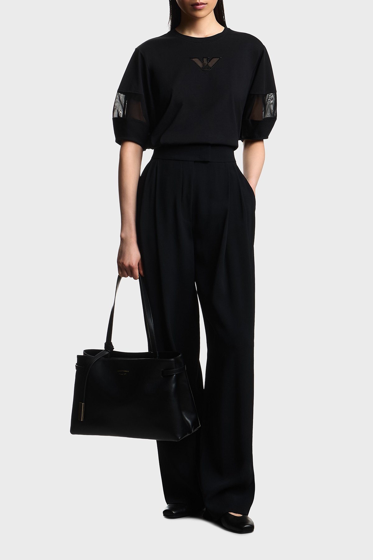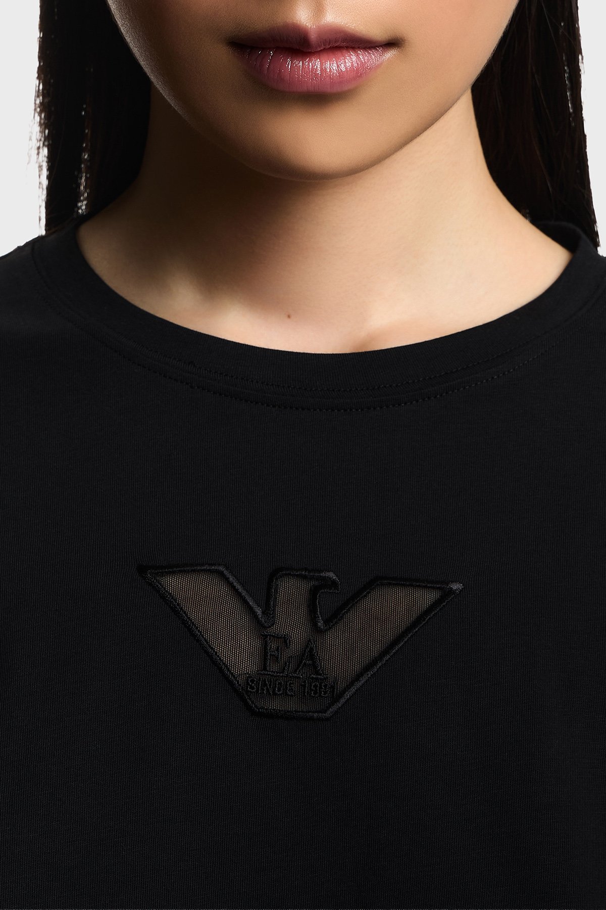 Pamuklu Regular Fit Bisiklet Yaka Kol Detaylı Bayan T Shirt EW004390 AF13318 UC001 SİYAH