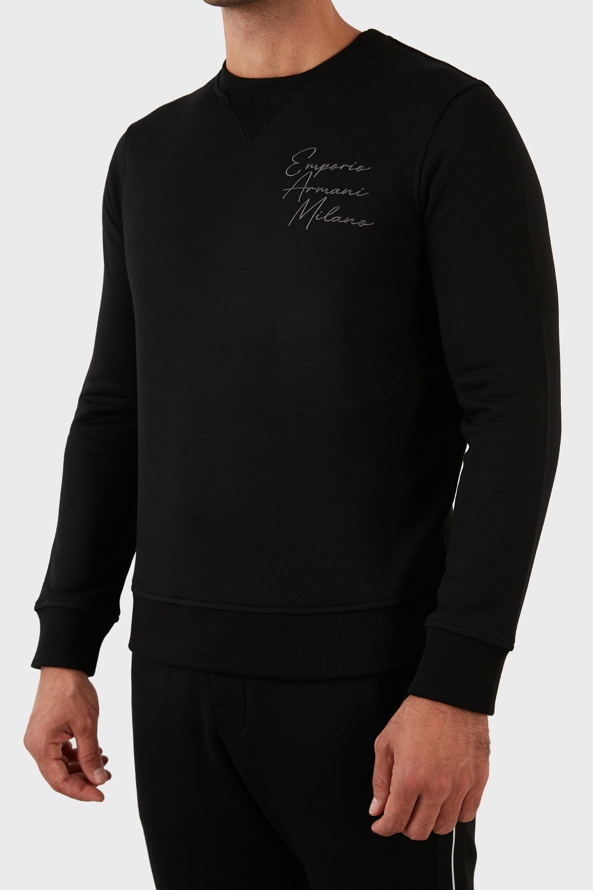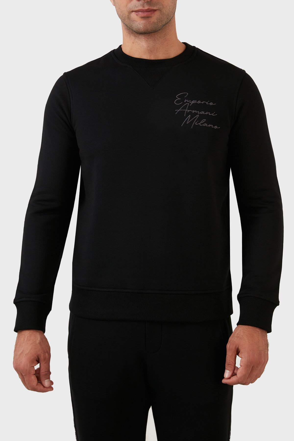 Pamuklu Regular Fit Bisiklet Yaka Şardonlu Erkek Sweat 6L1MP2 1JQNZ 0030 SİYAH