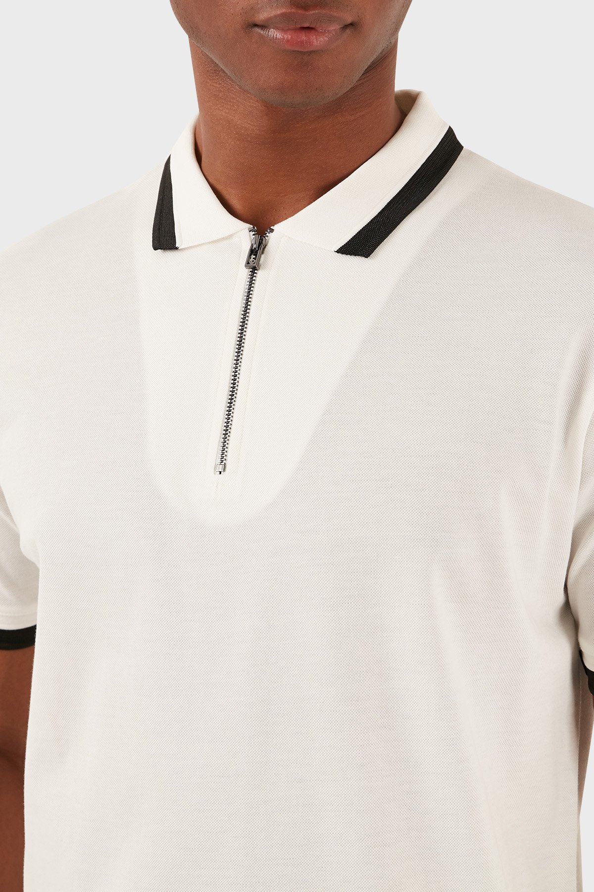 Pamuklu Regular Fit Fermuarlı Erkek Polo Yaka T Shirt 3D1FE5 1JTKZ 0101 BEYAZ