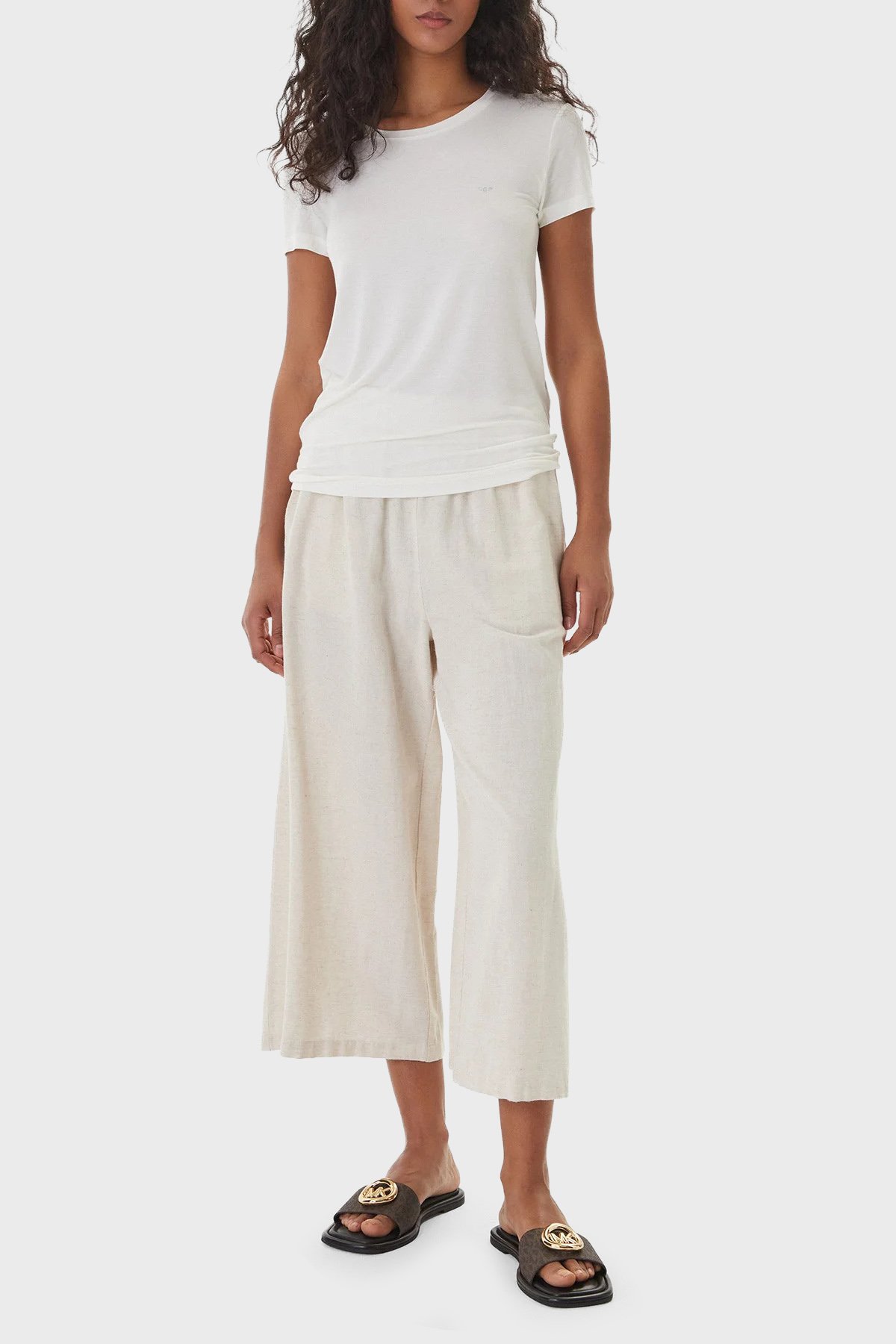 Pamuklu Regular Fit Logolu Yuvarlak Yaka Bayan T Shirt EW000408 AF19024 U1131 EKRU