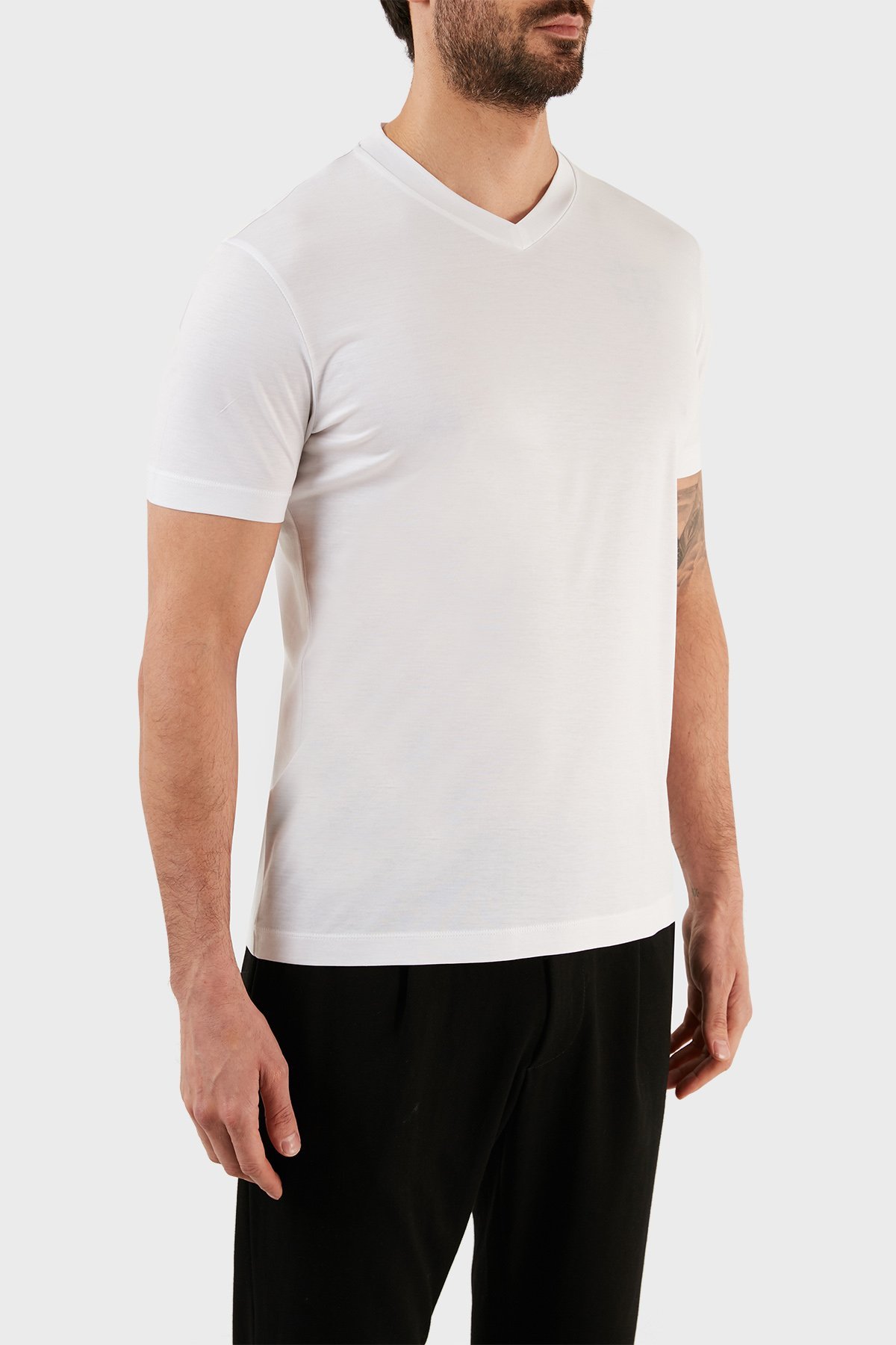 Pamuklu Regular Fit V Yaka Erkek T Shirt 8N1TE7 1JUVZ 0100 BEYAZ