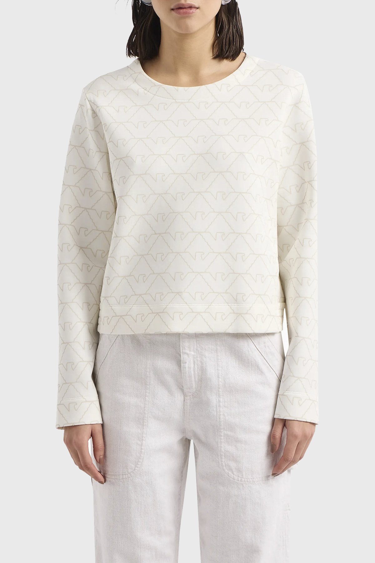Pamuklu Relaxed Fit Bisiklet Yaka Bayan Sweat 3D2M6H 1JHSZ F126 BEYAZ