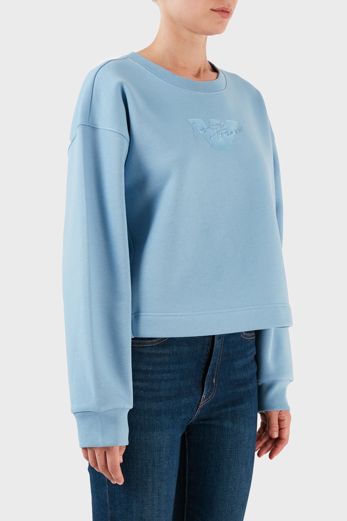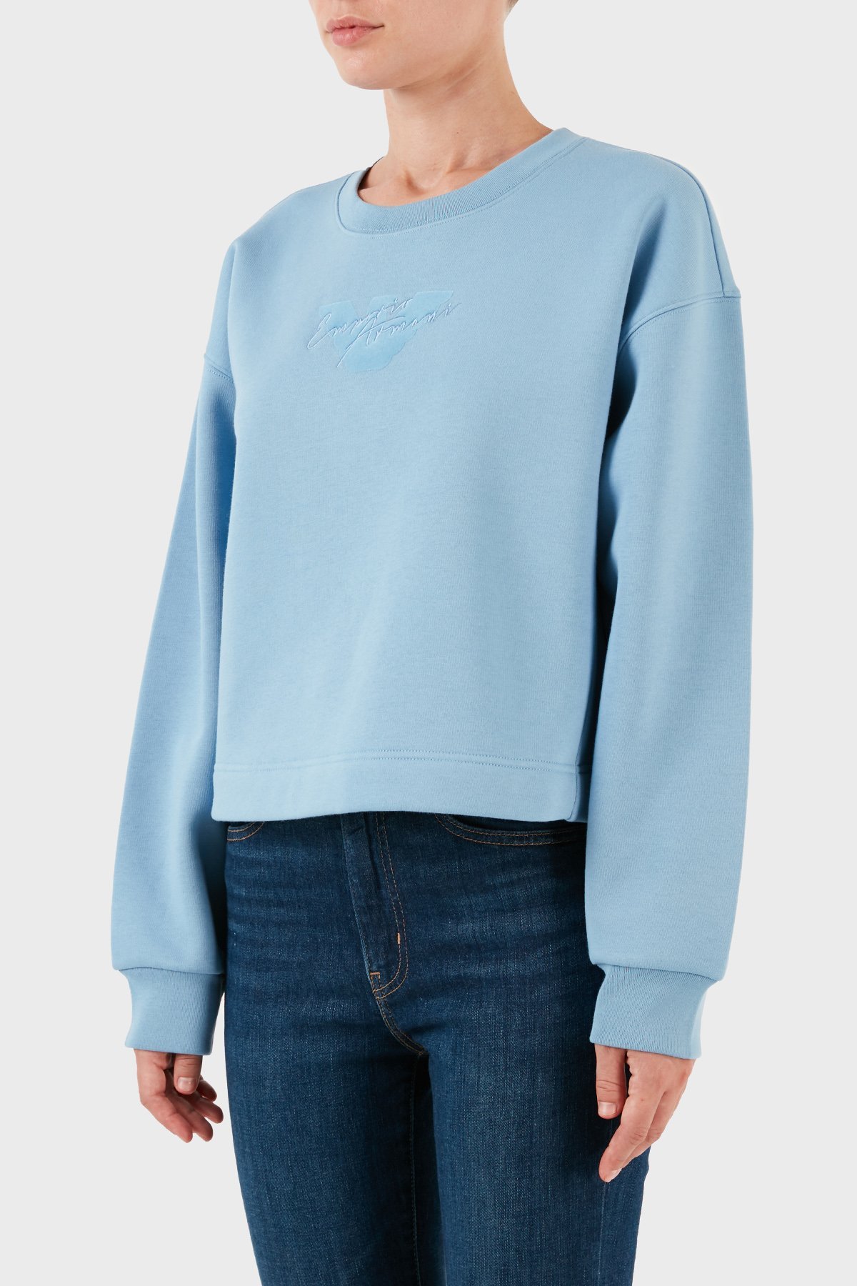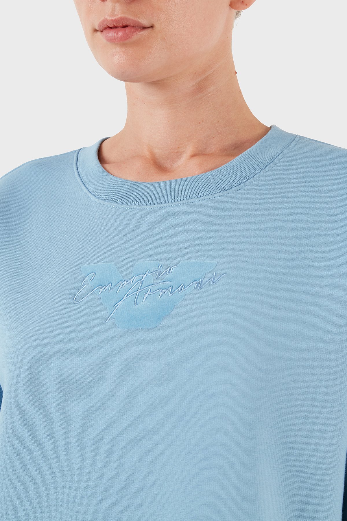 Pamuklu Relaxed Fit Bisiklet Yaka Crop Bayan Sweat 6R2M7L 2JTDZ 0712 MAVİ