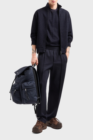 Pamuklu Relaxed Fit Düz Paça Çizgi Detaylı Erkek Pantolon EM001111 AF13488 UB118 LACİVERT