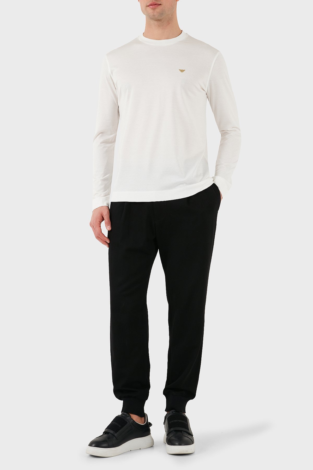 Pamuklu Slim Fit Bisiklet Yaka Uzun Kollu Erkek T Shirt EM001703 AF10017 M0131 BEYAZ
