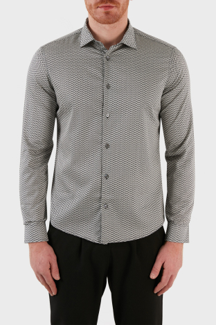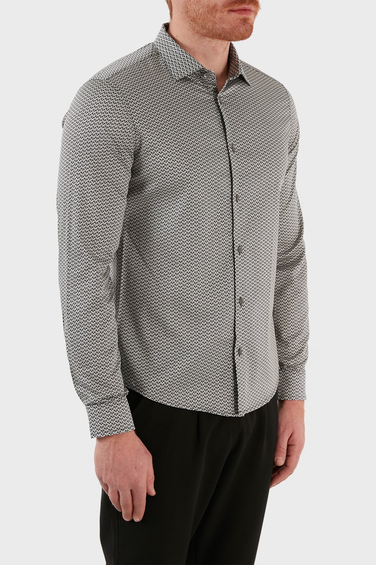 Pamuklu Slim Fit Erkek Gömlek 6K1C65 1NZEZ F015 SİYAH-BEYAZ