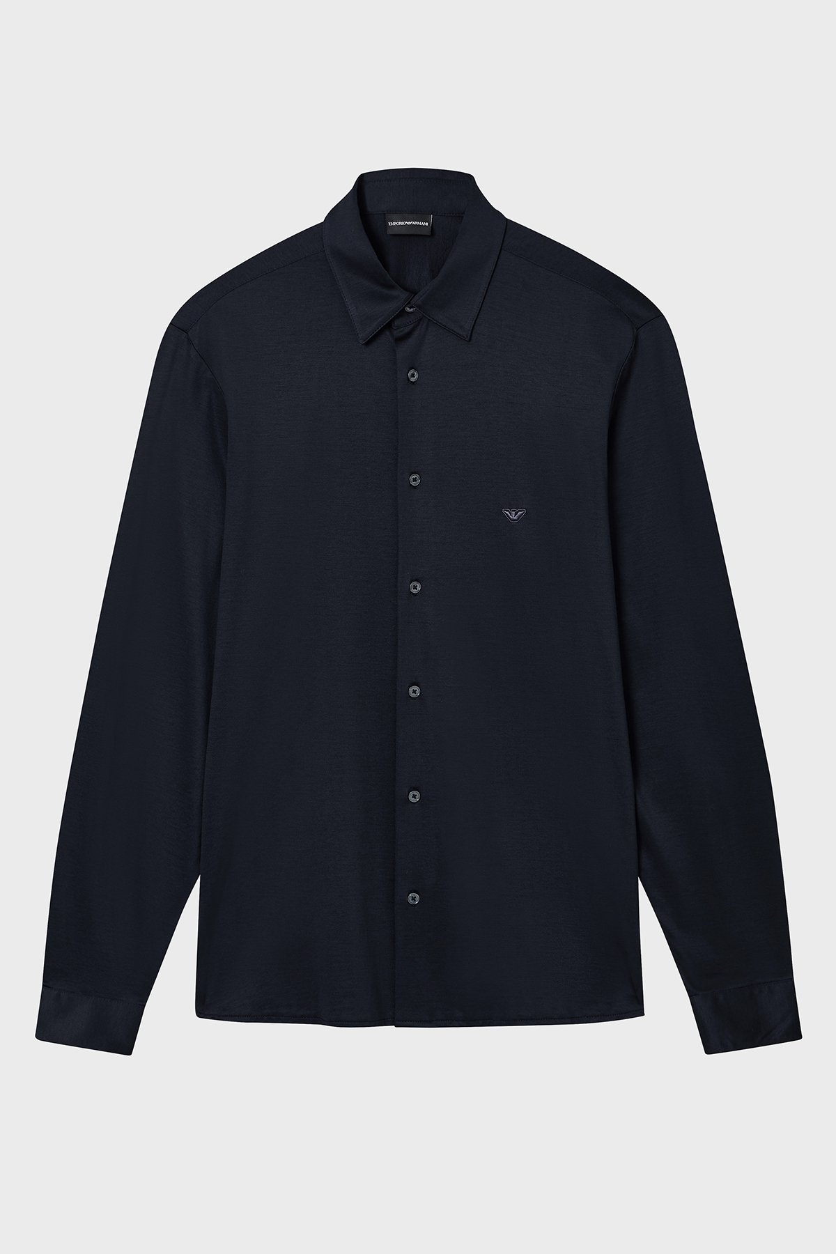Pamuklu Slim Fit Logolu Uzun Kollu Erkek Gömlek EM004604 AF10017 UB118 LACİVERT