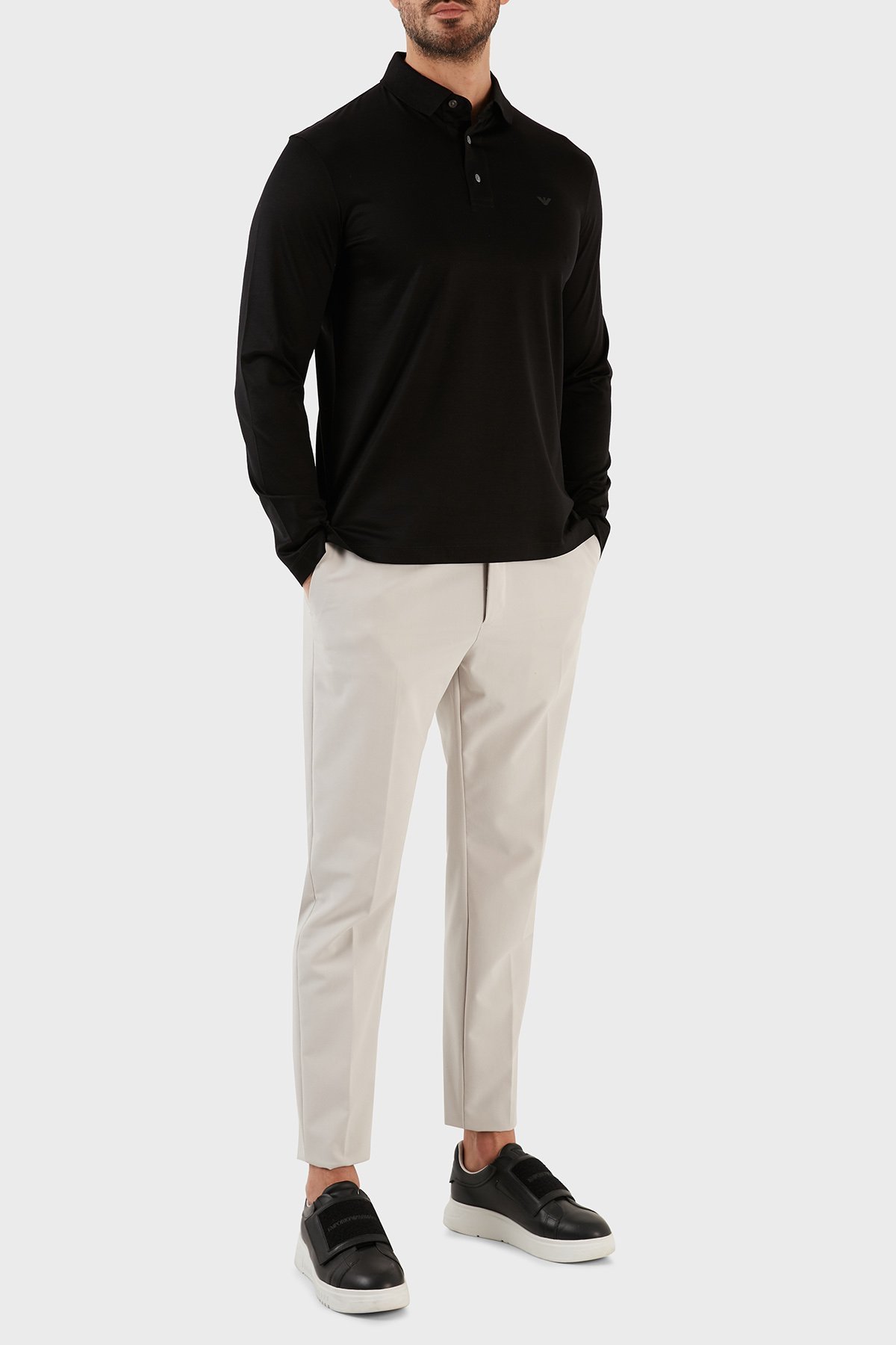 Pamuklu Slim Fit Uzun Kollu Düğmeli Erkek Polo Yaka Sweat 8N1F97 1JUVZ 0999 SİYAH