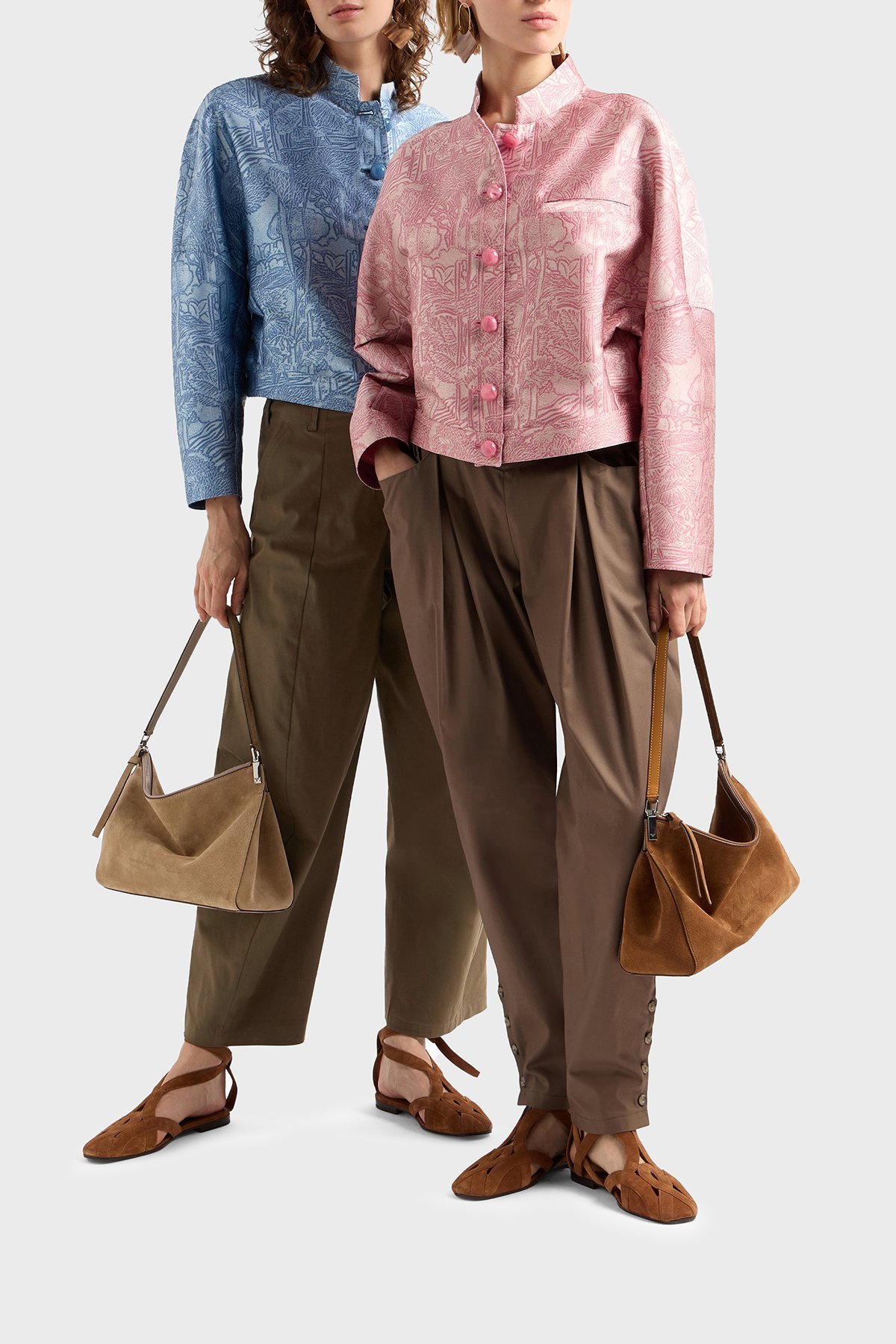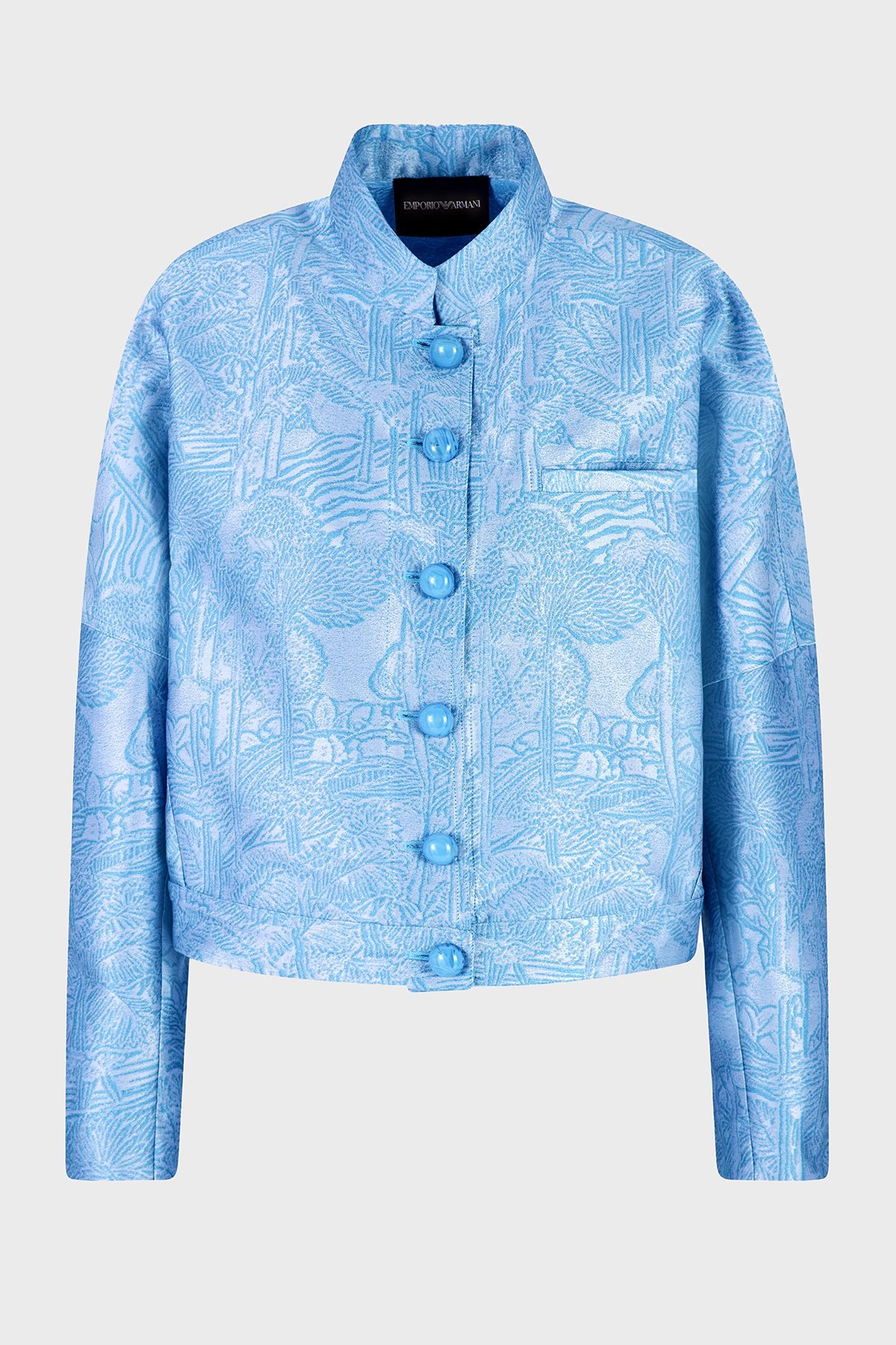 Regular Fit Dik Yaka Tamamı Jakarlı Bayan Ceket EW001548 TE13445 F9024 AÇIK MAVİ