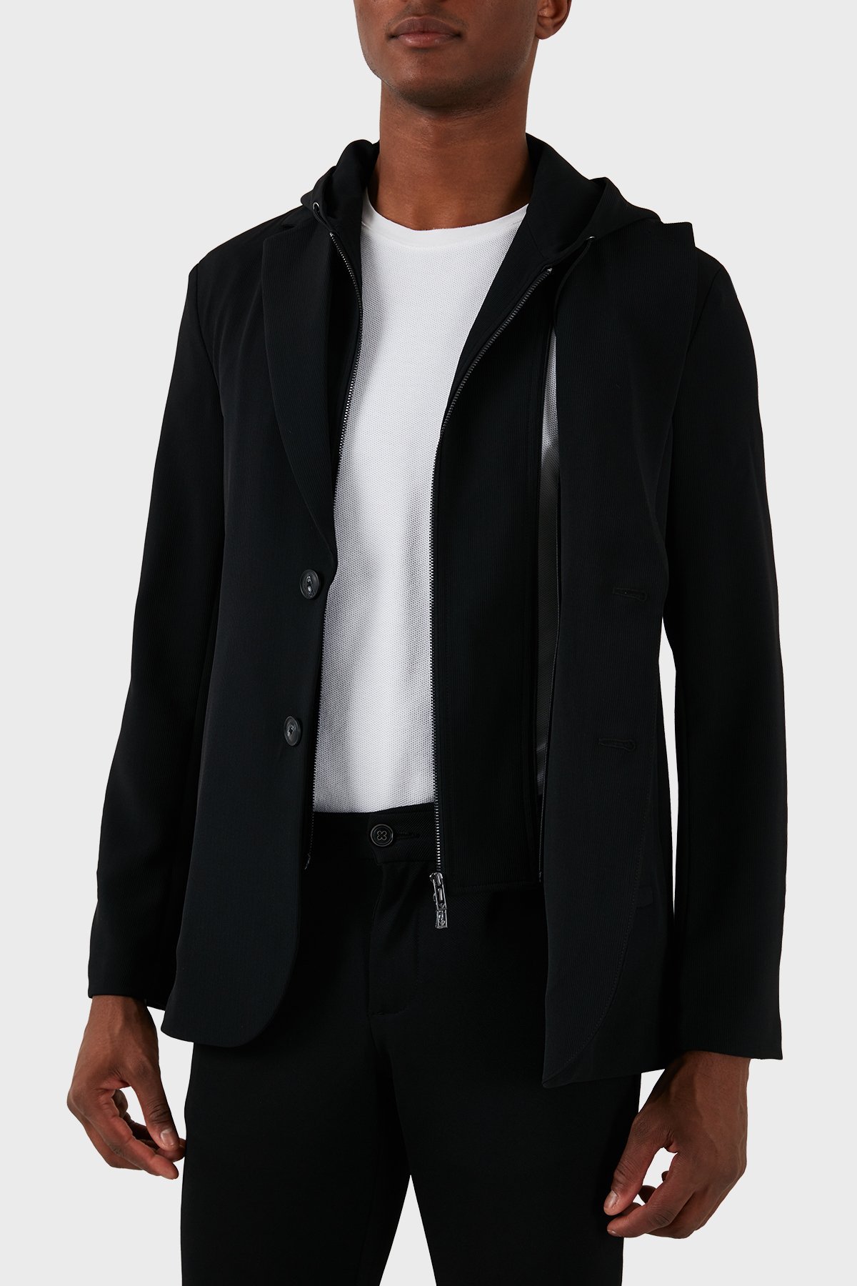 Regular Fit Kapüşonlu Spor Blazer Erkek Ceket 3D1G73 1NPQZ 0999 SİYAH