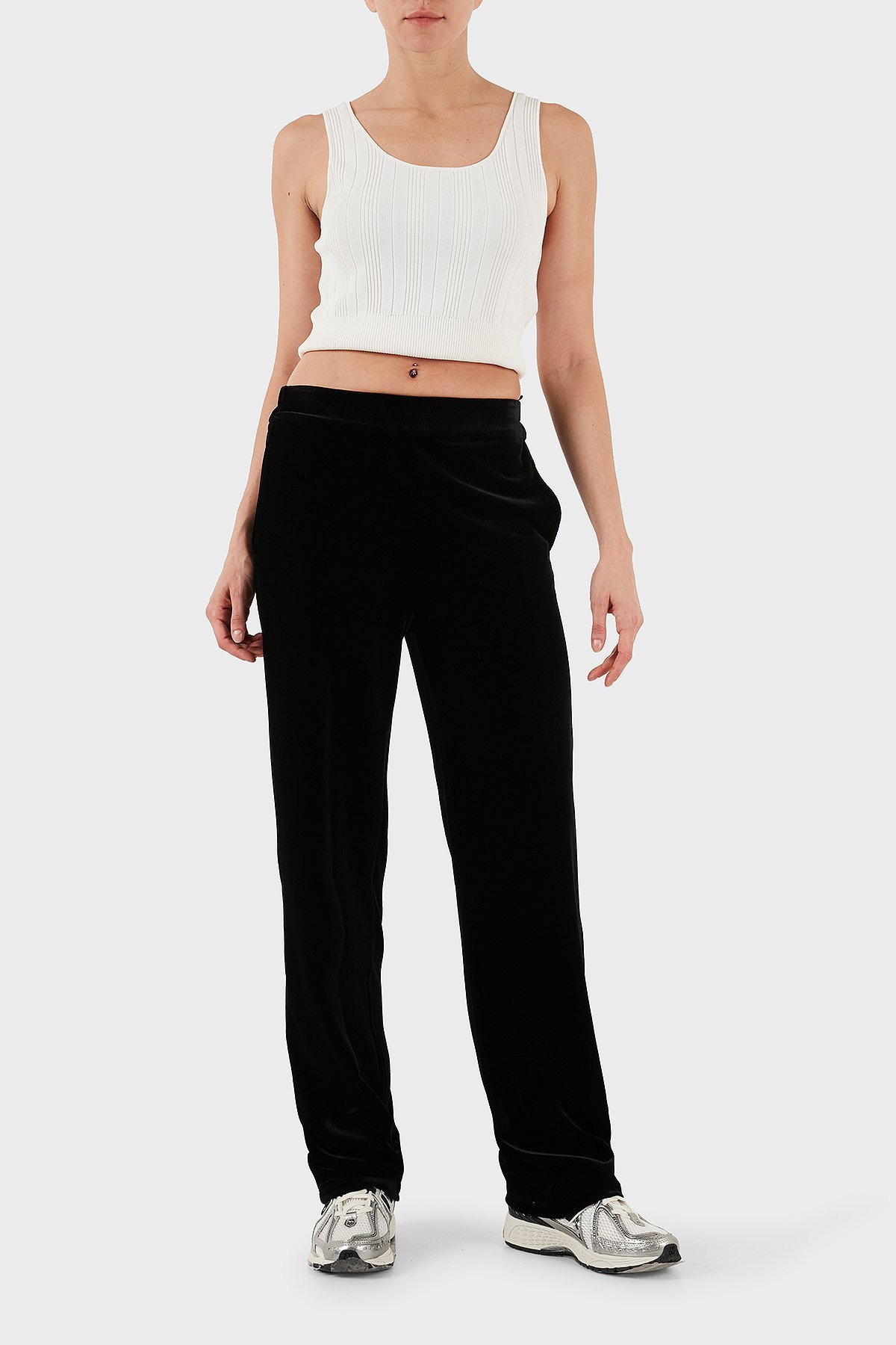 Regular Fit Lastikli Bel Düz Paça Şönil Bayan Pantolon EW001366 AF13341 UC001 SİYAH