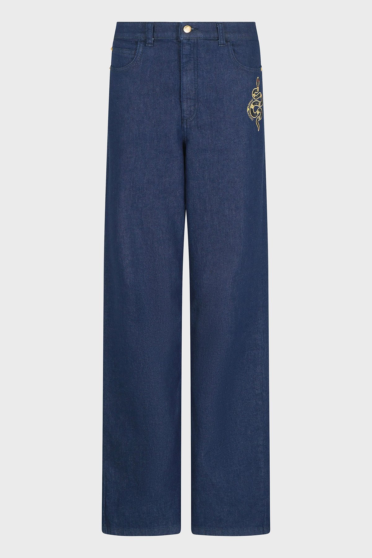 Detay : -Yapay elmaslarla süslenmiş yılan işlemeleri ve arkada altın etiketi bulunan kot