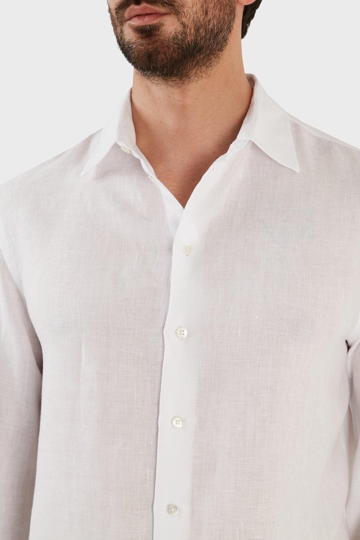 Regular Fit Uzun Kollu Keten Erkek Gömlek D41SM0 D10F9 100 BEYAZ