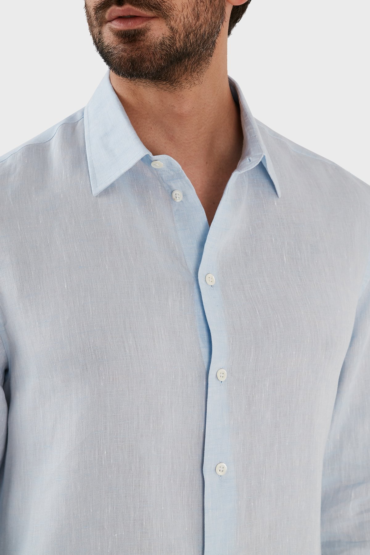 Regular Fit Uzun Kollu Keten Erkek Gömlek D41SM0 D10F9 700 MAVİ