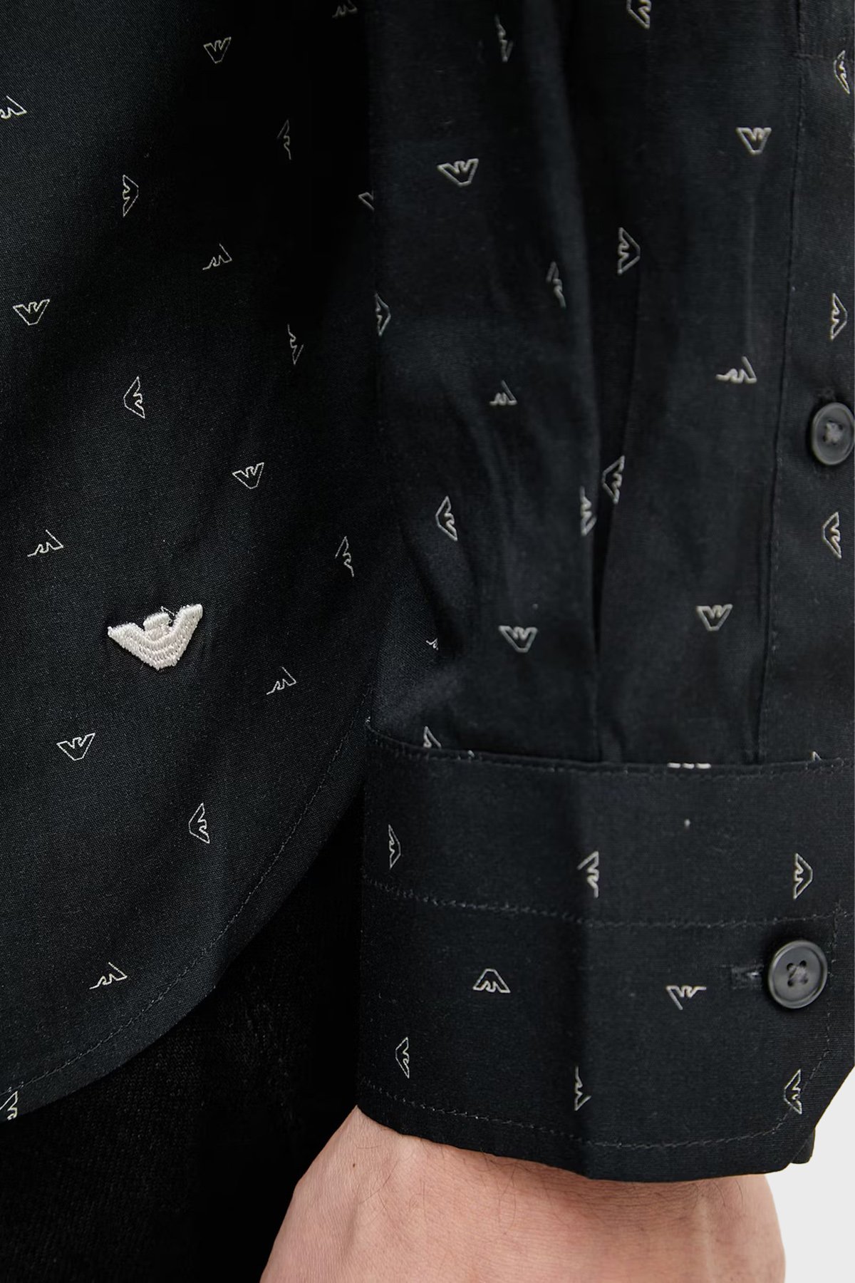 Relaxed Fit Baskılı Uzun Kollu Erkek Gömlek EM004178 AF14214 FB471 SİYAH
