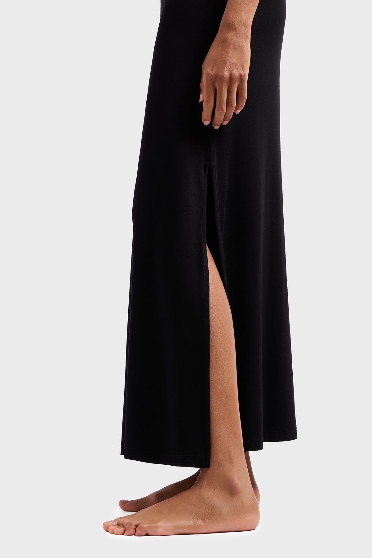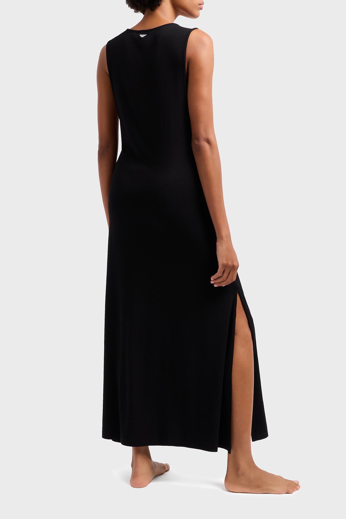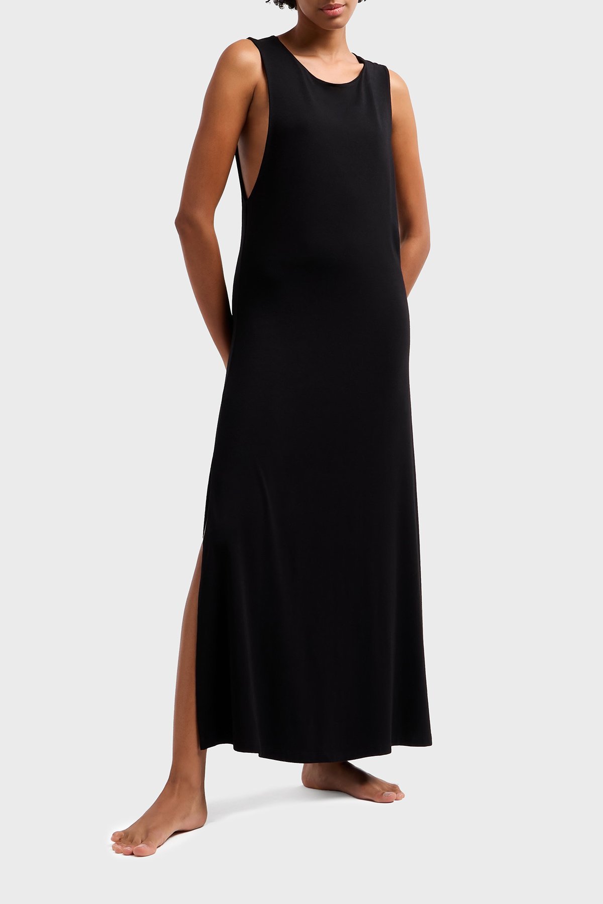Relaxed Fit Bisiklet Yaka Yırtmaçlı Midi Boy Bayan Plaj Elbisesi EW000784 AF12192 UC001 SİYAH