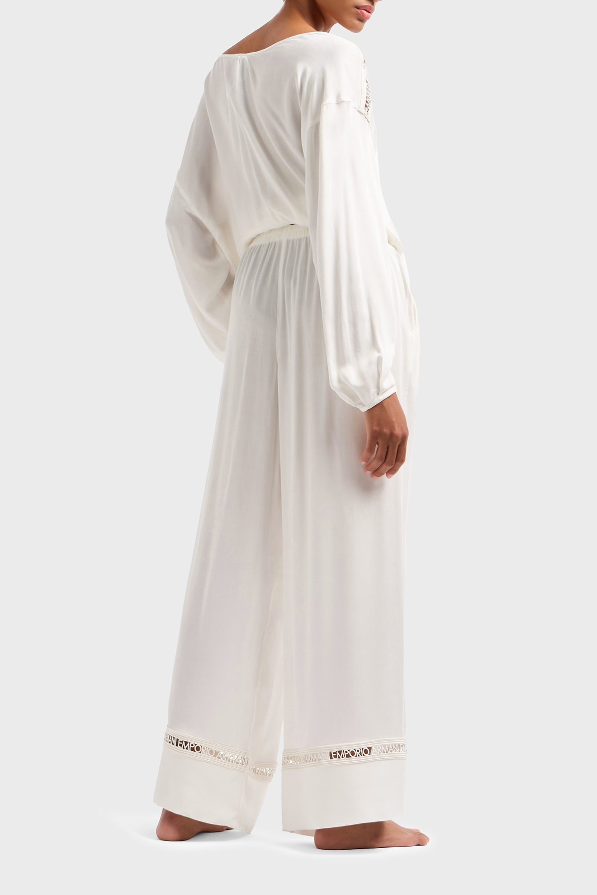 Relaxed Fit Bol Paça Logo Dantelli Bayan Pantolon EW000790 AF12188 U1131 BEYAZ