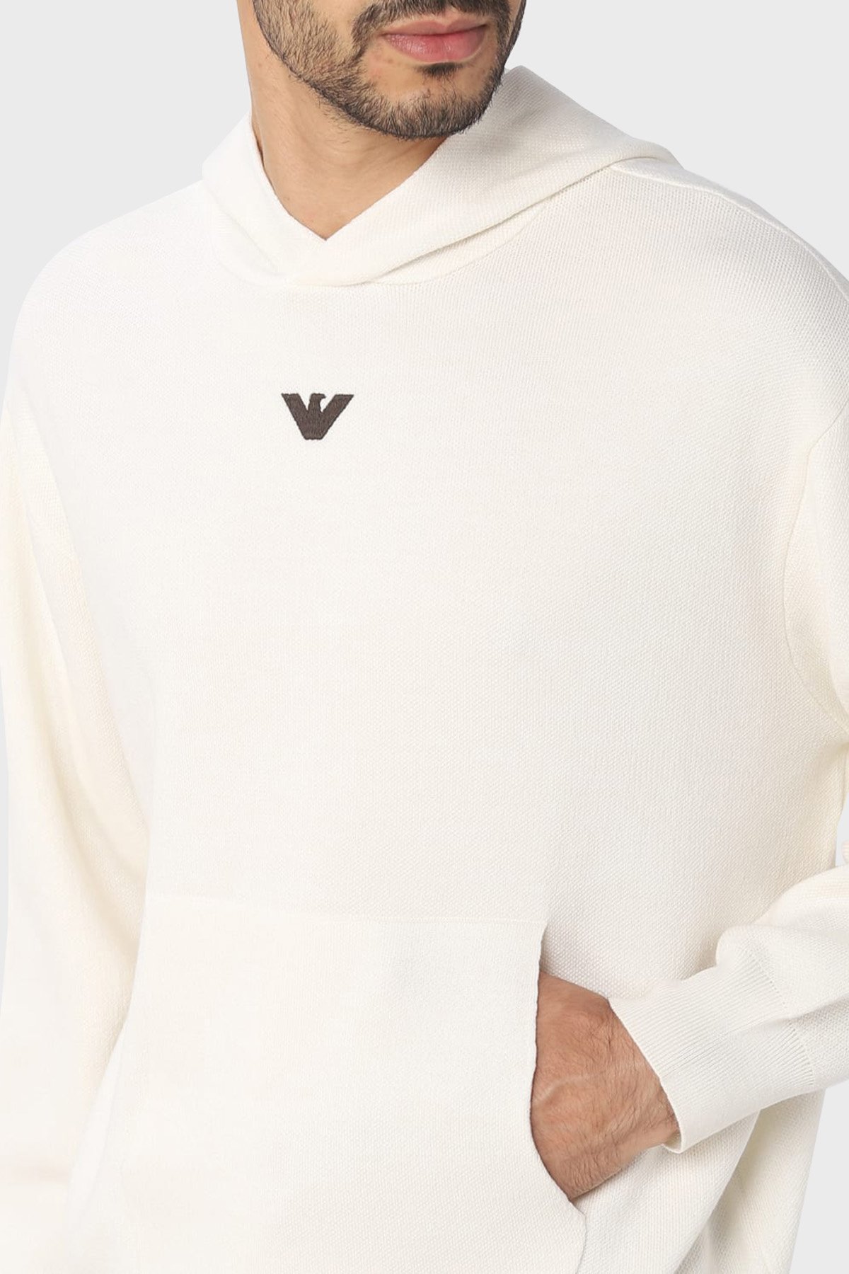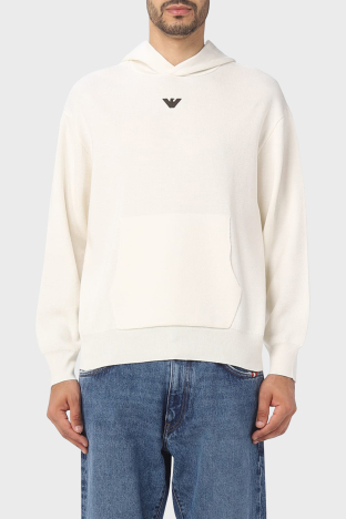 Relaxed Fit Kapüşonlu Kanguru Cepli Yün Karışımlı Triko Erkek Sweat 6R1MX7 1MNBZ F1F4 EKRU