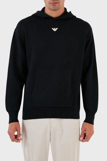 Relaxed Fit Kapüşonlu Kanguru Cepli Yün Karışımlı Triko Erkek Sweat 6R1MX7 1MNBZ F904 LACİVERT