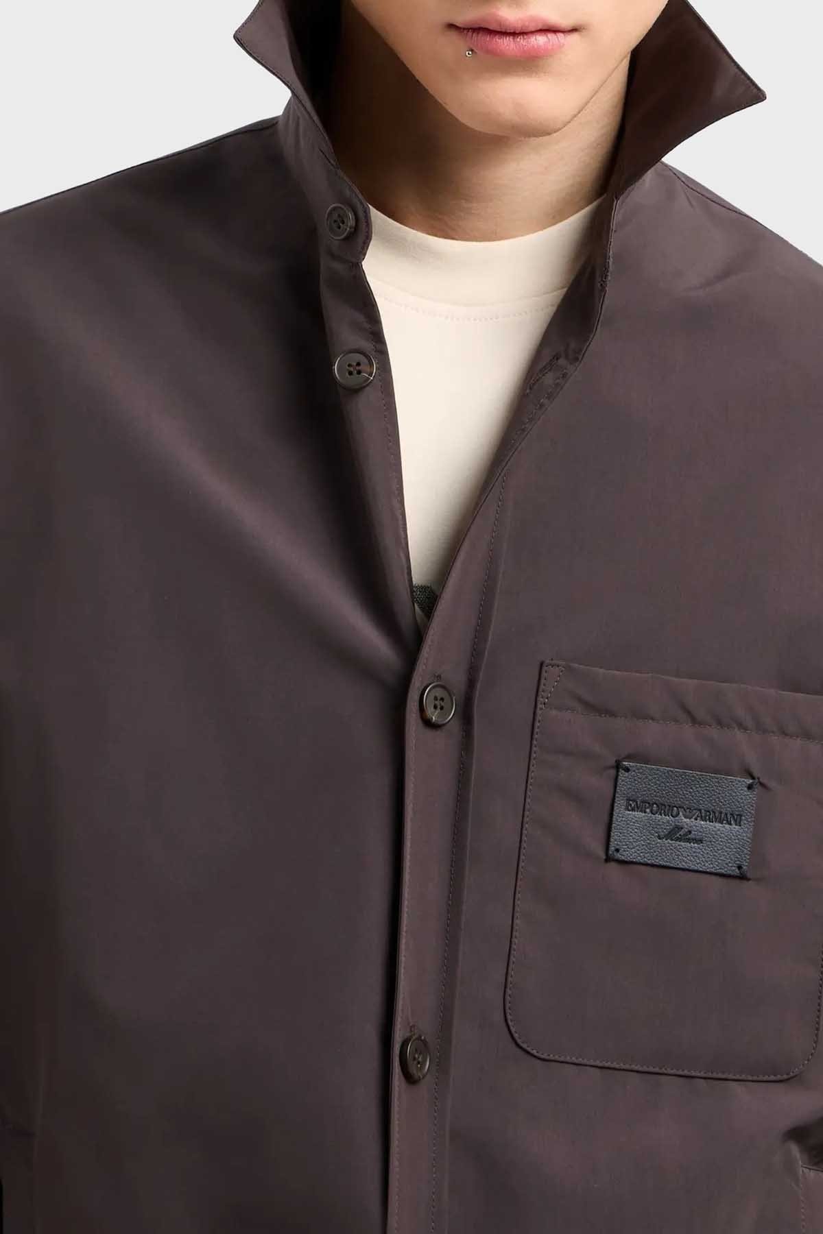 Relaxed Fit Yama Cepli ve Logo Yamalı Erkek Gömlek Ceket EM001629 AF13770 U8168 SİYAH