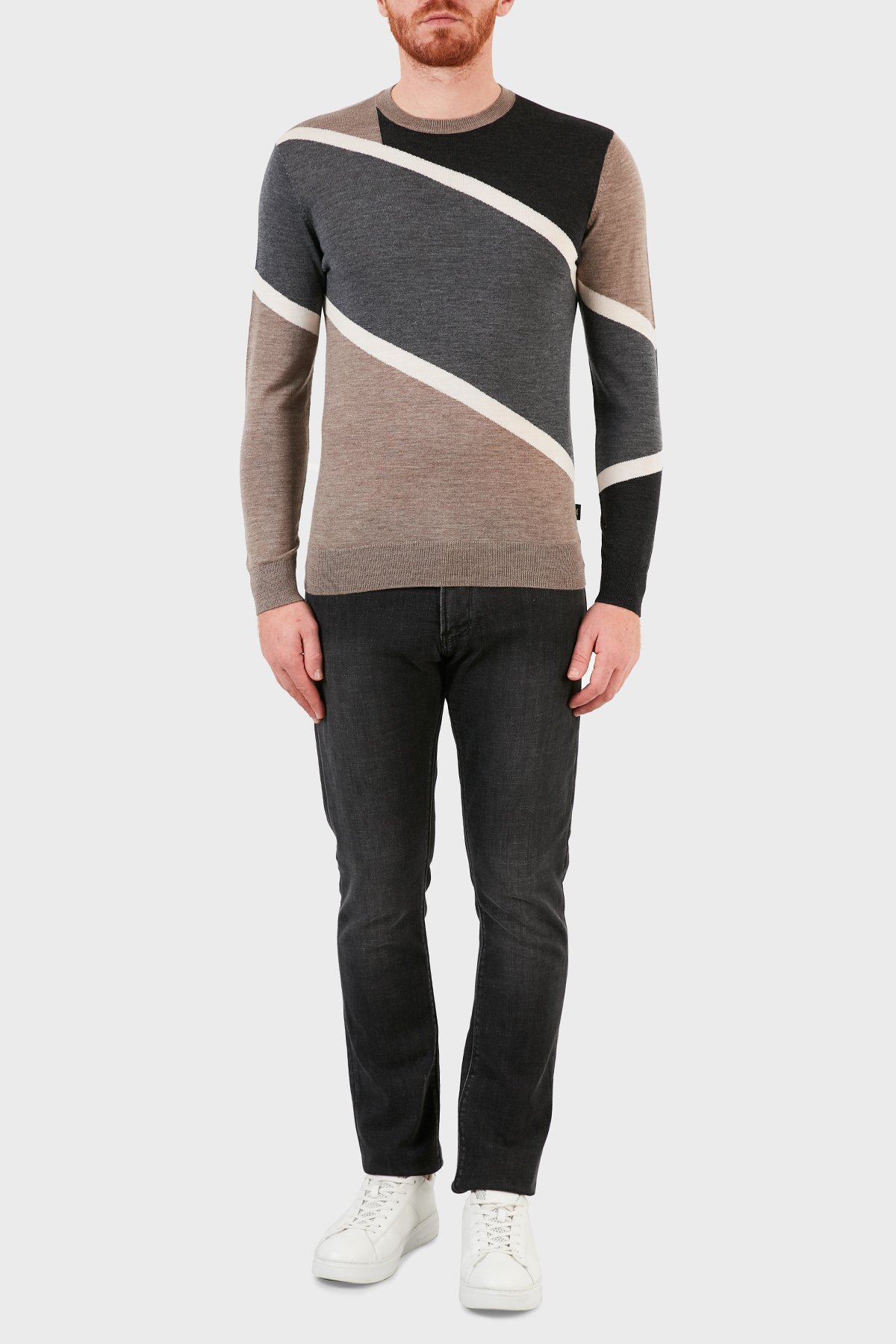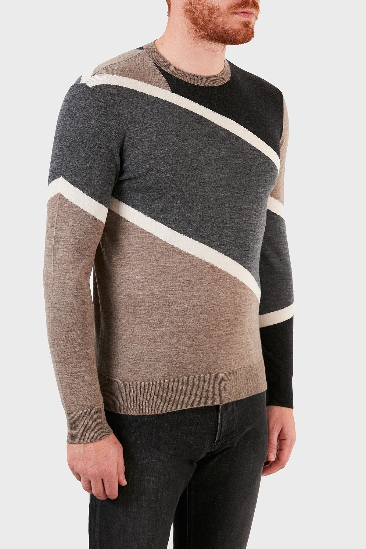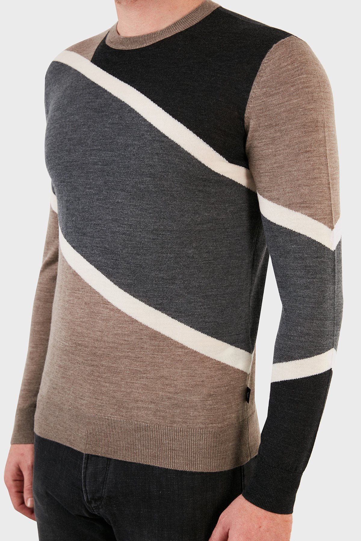 Renk Bloklu % 100 Saf Yün Bisiklet Yaka Erkek Kazak 6K1MTD 1MXPZ F137 BEJ-GRİ