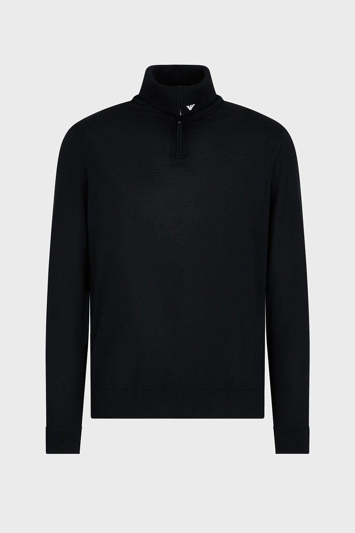 Saf Yünlü Regular Fit Fermuarlı Dik Yaka Erkek Kazak 6R1MXF 1MNFZ F008 SİYAH