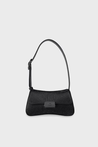 Saten Logolu Elmas İşlemeli Ayarlanabilir Omuz Askılı Bayan Çanta Y3E244 YZZ9I8 1138 SİYAH