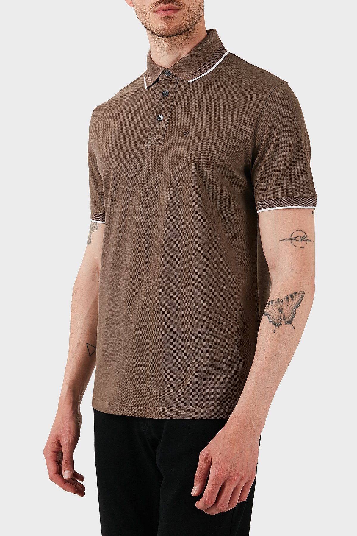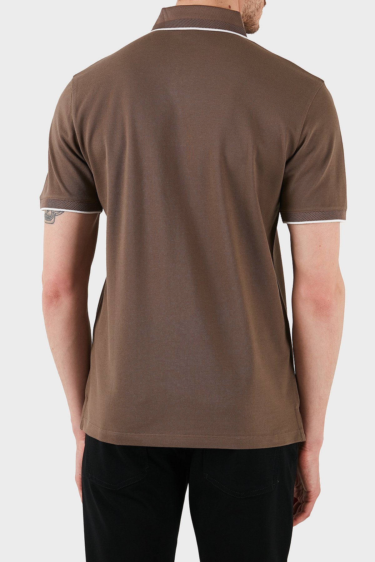Şeritli % 100 Pamuk Düğmeli Erkek Polo Yaka T Shirt EM000858 AF12955 U6195 KAHVE