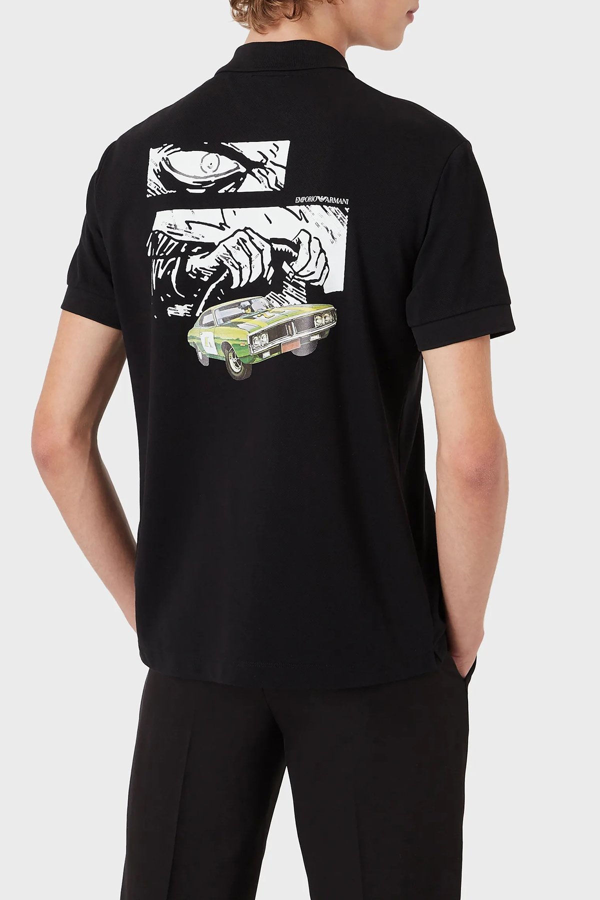 Sırt Baskılı % 100 Pamuk Düğmeli T Shirt Erkek Polo 3L1F8P 1JX5Z F017 SİYAH