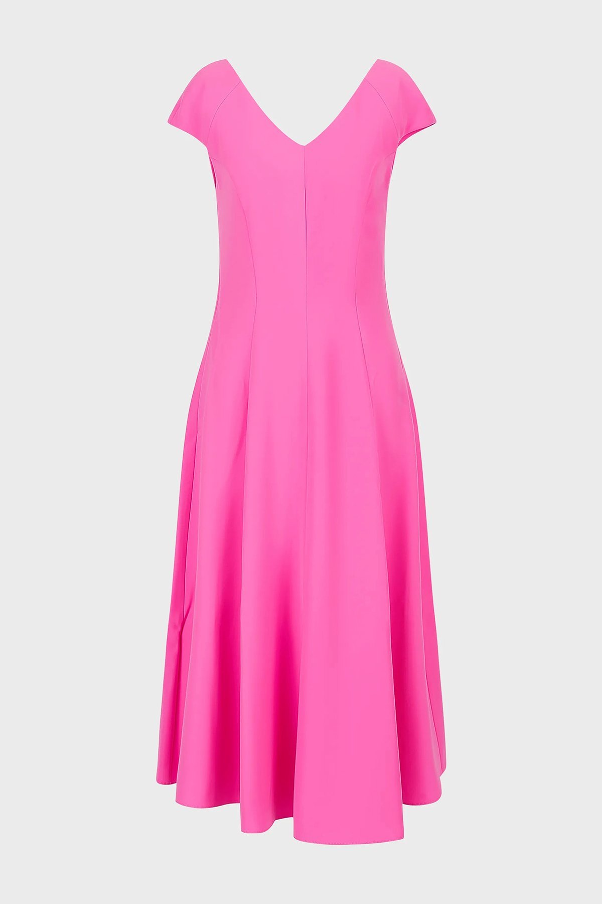 Sırt Dekolteli V Yaka Cut Out Kloş Midi Bayan Elbise D4NA1F 2NWAZ 309 FUŞYA
