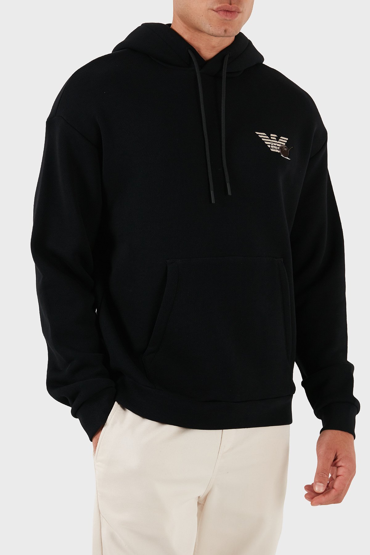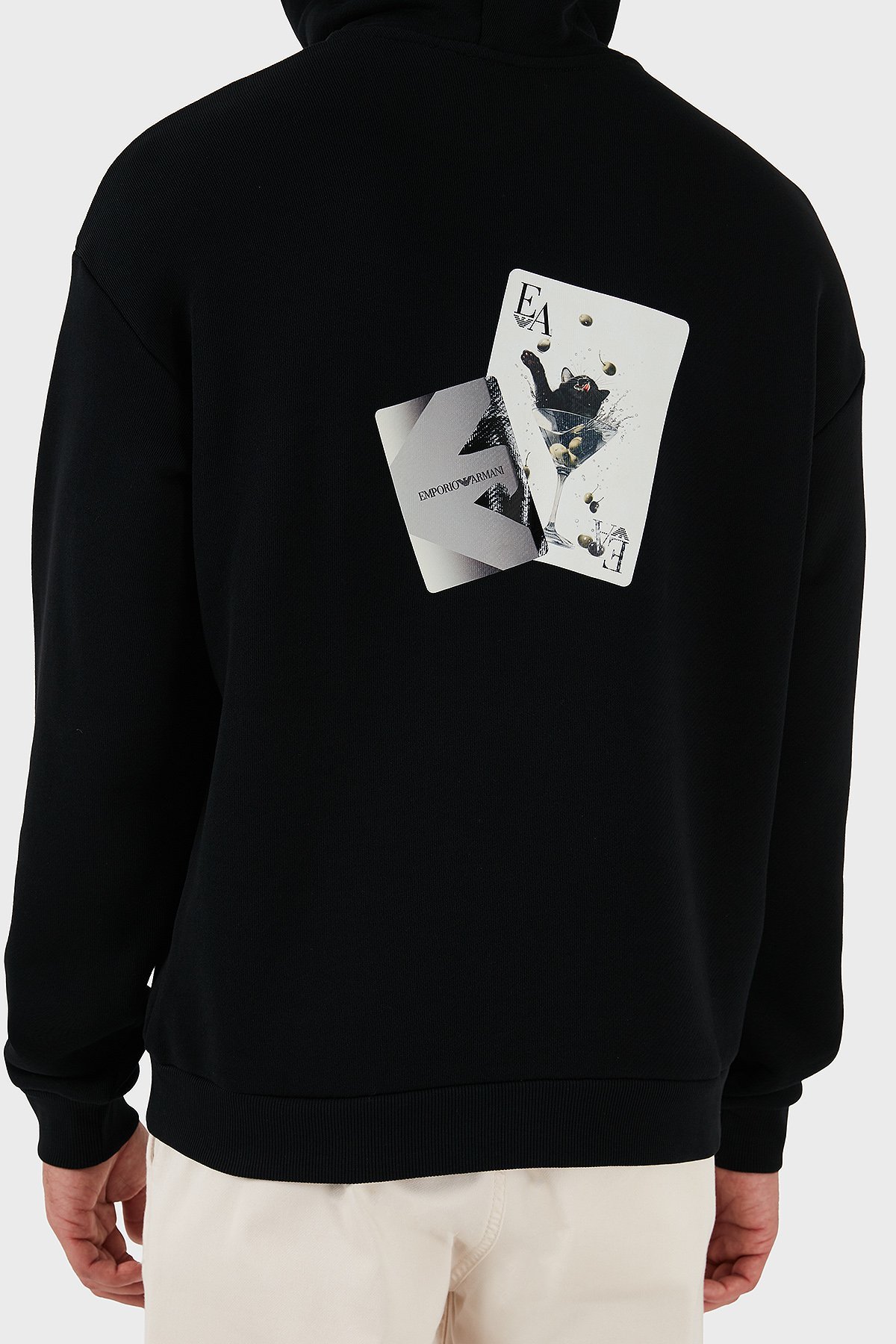 Sırt Desenli Logolu % 100 Pamuk Relaxed Fit Kapüşonlu Erkek Sweat EM003611 AF14793 UC001 SİYAH