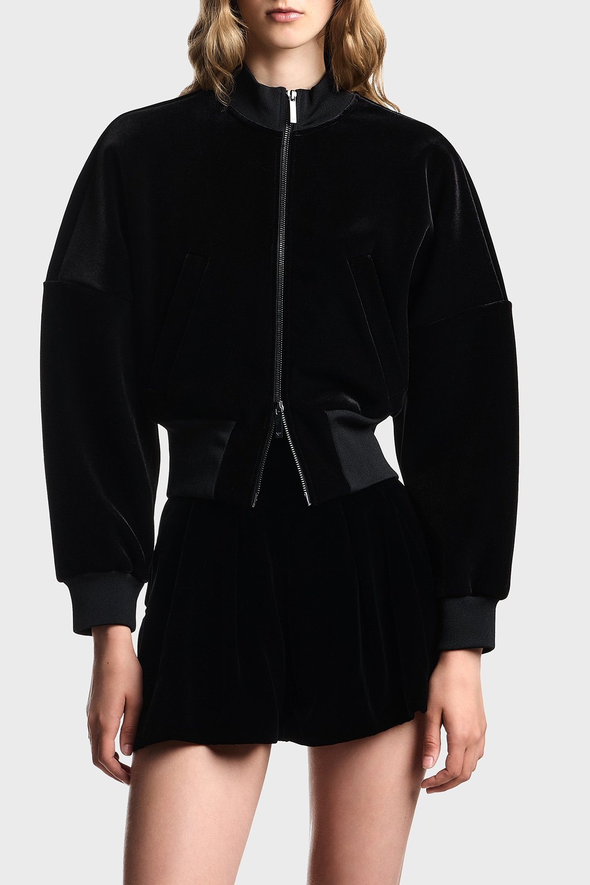 Sırtta Logo Detaylı Regular Fit Dik Yaka Şönil Bayan Mont EW001368 AF16466 UC001 SİYAH