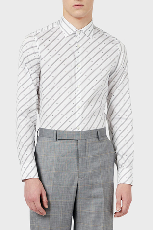 Slim Fit Logo Baskılı Pamuklu Erkek Gömlek 3K1CC1 1NXTZ F124 BEYAZ