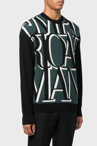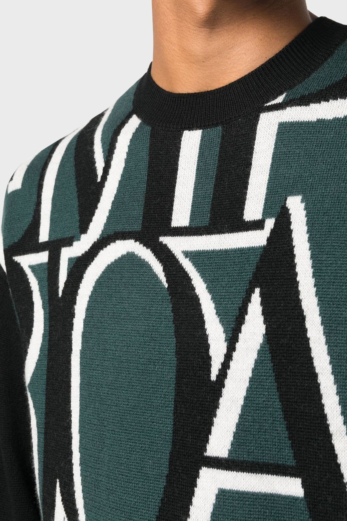 Slim Fit Tamamı Logolu Bisiklet Yaka % 100 Yün Erkek Kazak 6L1MXW 1MCPZ F022 HAKİ