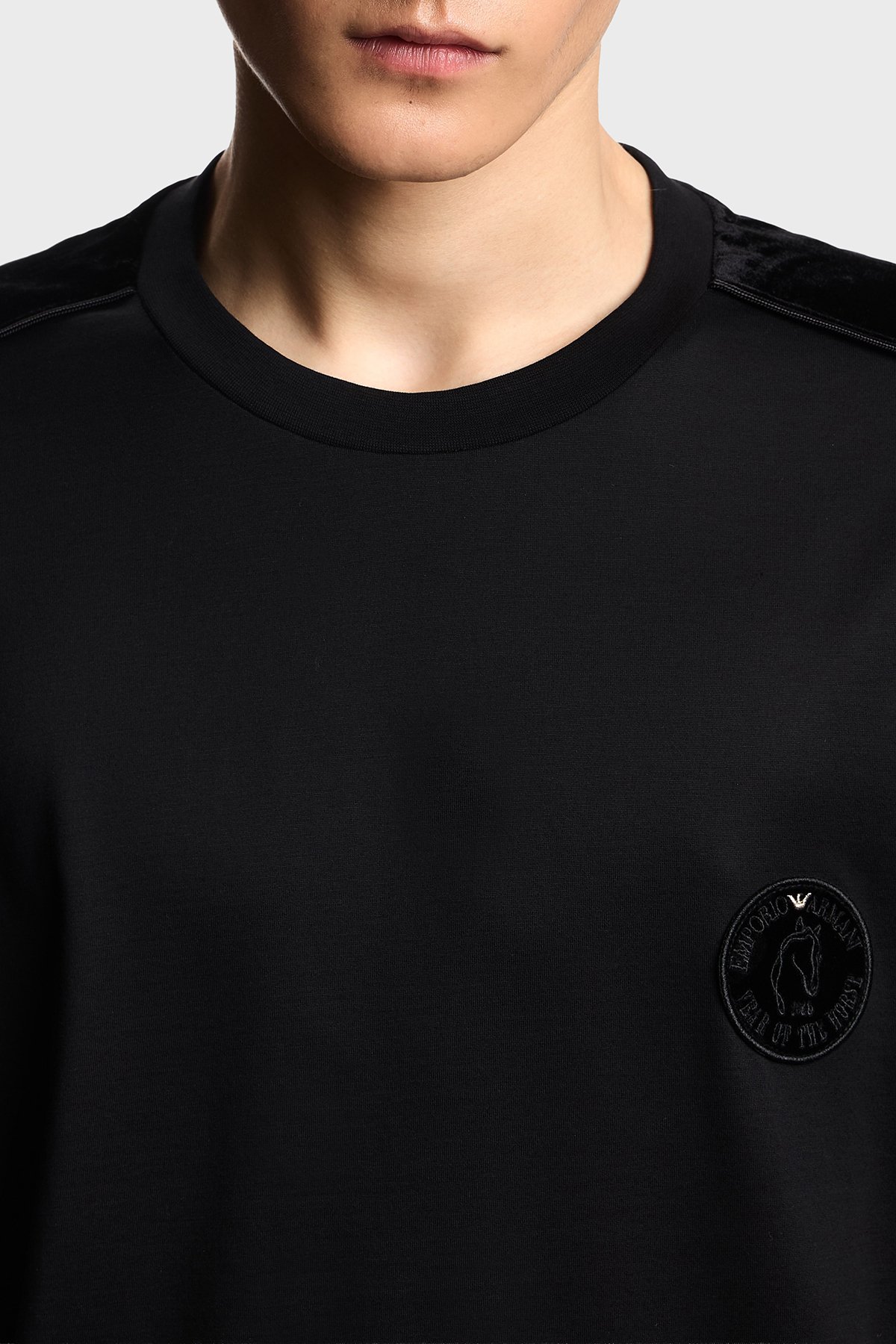 Şönil Şerit Detaylı Regular Fit Bisiklet Yaka Erkek T Shirt EM005342 AF10017 UC001 SİYAH