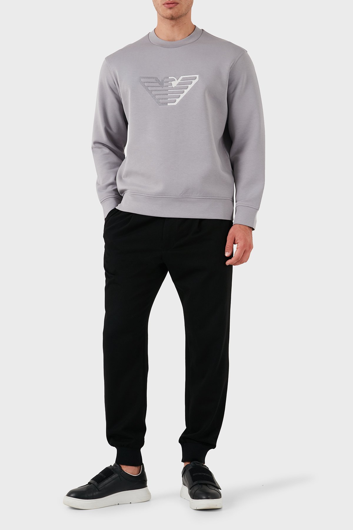 Streç Pamuklu Regular Fit Bisiklet Yaka Logolu Erkek Sweat 6D1M76 1JHSZ 06K3 GRİ