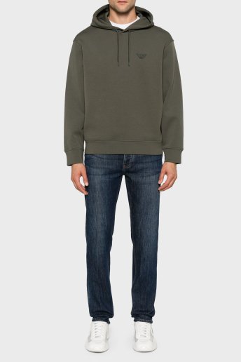 Streç Pamuklu Regular Fit Kapüşonlu Erkek Sweat 6D1M94 1JHSZ 0661 HAKİ